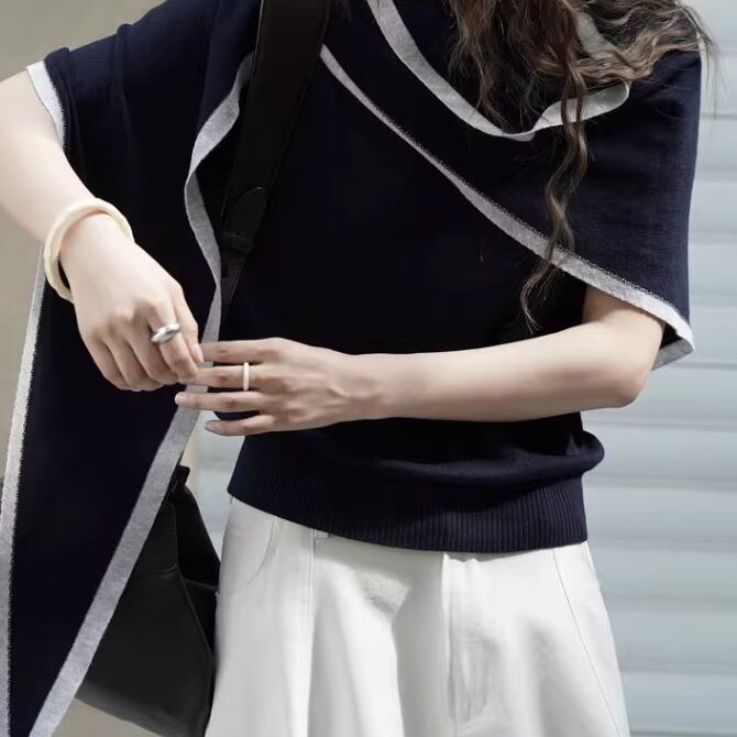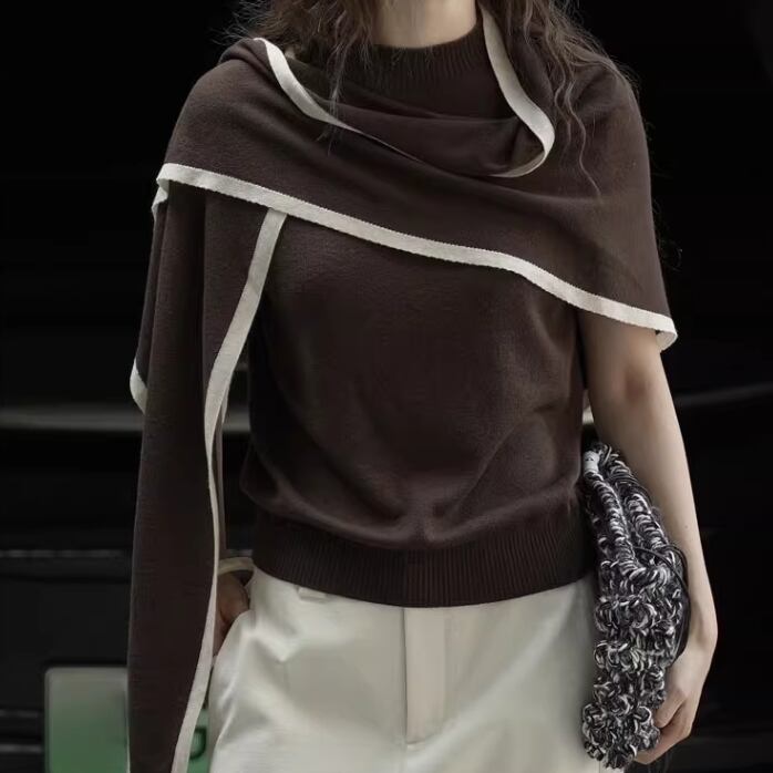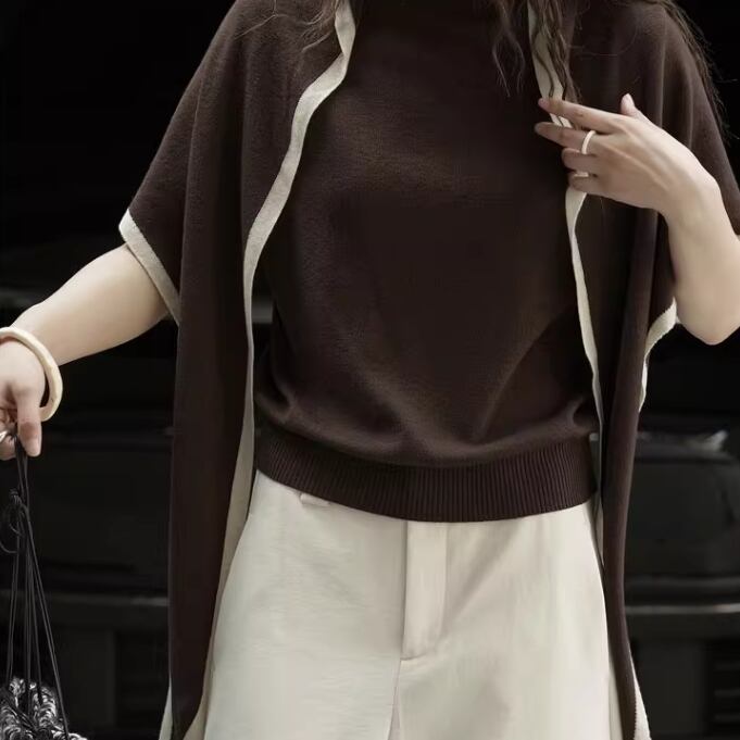 【2点セット】4色/Vネックニットトップス+ニットショール ・19992