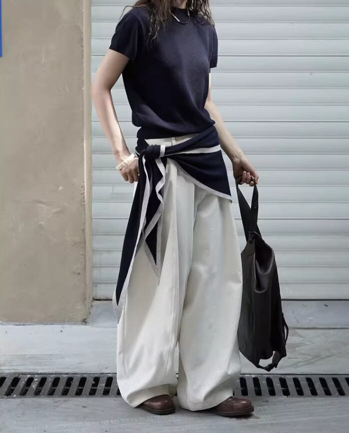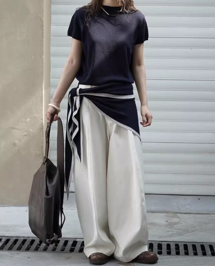 【2点セット】2色/ノースリーブウエストマークトップス+ワイドレッグパンツ ・18707