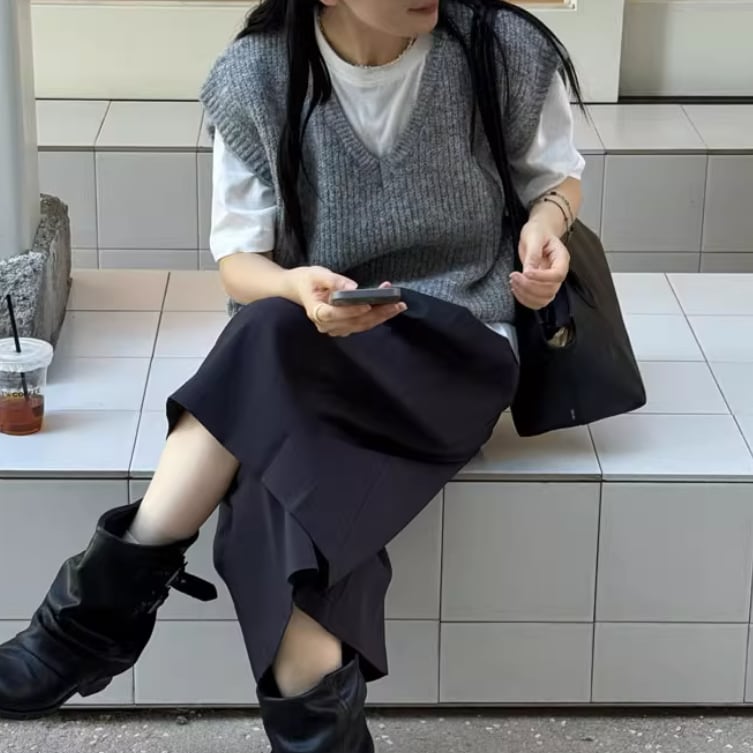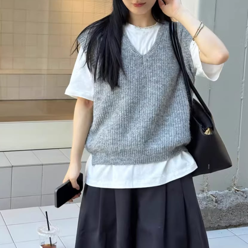 2色/Vネックニットベスト ・18955