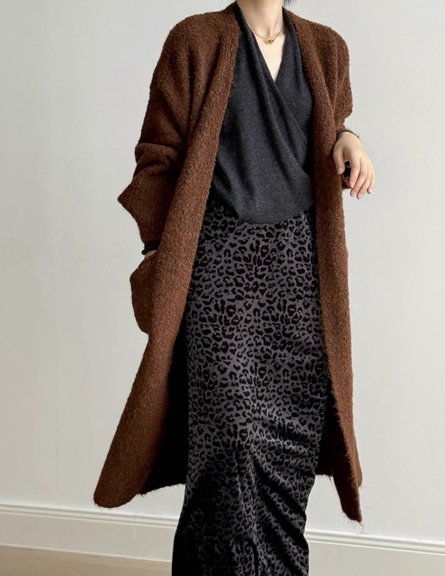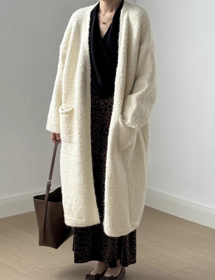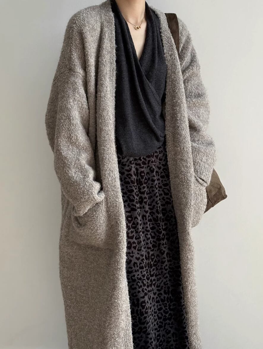▽Instagram「新作情報配信中」 フォローお願いいたします。 https://www.instagram.com/stir.clothes/ ▼カラー オフホワイト(画像2枚目) カーキ(画像3枚目) ライトグレー(画像4枚目) ブラウン(画像5枚目) ▼サイズ [ フリーサイズ ] 着丈101cm バスト122cm 肩幅60cm 袖丈41cm 裾囲り126cm ※1-3cm程度の誤差がある場合がございます。予めご了承ください。 ▼素材 ポリエステル、ウール、ナイロン、スパンデックス ▼シーズン 秋,冬 ▼同じカテゴリの商品はこちら https://www.stir.jp/categories/3047430 ▽お支払い方法 ・クレジットカード決済 ・キャリア決済 (docomo/au/Softbank/Y!mobile) ・後払い決済 (商品お届け後コンビニ払いなど) ▽注意点 ※こちらの商品は決済から10日-3週間前後でのお届けとなります。 ※配送日時指定等に関しては、ご指定できないことご了承くださいませ。 ※できる限り早くお届けできるように手配させて頂きます。 ※検品はしておりますが、もし届いた商品に不備がありましたら、誠実に対応させていただきます。 商品ID:ST019971