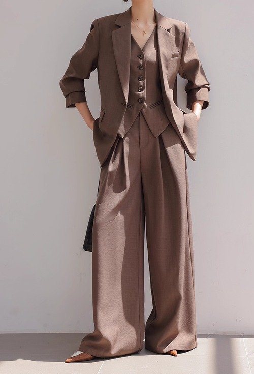 ▽Instagram「新作情報配信中」 フォローお願いいたします。 https://www.instagram.com/stir.clothes/ ▼サイズ [ Sサイズ ] トップス:着丈70.5cm バスト105cm 肩幅42cm 袖丈62cm ベスト:着丈45.5cm バスト84cm 肩幅27cm ウエスト72cm パンツ:着丈103cm ウエスト67cm ヒップ112cm 裾囲り72cm [ Mサイズ ] トップス:着丈72cm バスト109cm 肩幅43cm 袖丈63cm ベスト:着丈46.5cm バスト88cm 肩幅28cm ウエスト76cm パンツ:着丈104cm ウエスト71cm ヒップ116cm 裾囲り74cm [ Lサイズ ] トップス:着丈73.5cm バスト113cm 肩幅44cm 袖丈64cm ベスト:着丈47.5cm バスト92cm 肩幅29cm ウエスト80cm パンツ:着丈105cm ウエスト75cm ヒップ120cm 裾囲り76cm ※1-3cm程度の誤差がある場合がございます。予めご了承ください。 ▼素材 ポリエステル ▼シーズン 春,秋 ▼同じカテゴリの商品はこちら https://www.stir.jp/categories/3047418 ▽お支払い方法 ・クレジットカード決済 ・キャリア決済 (docomo/au/Softbank/Y!mobile) ・後払い決済 (商品お届け後コンビニ払いなど) ▽注意点 ※こちらの商品は決済から10日-3週間前後でのお届けとなります。 ※配送日時指定等に関しては、ご指定できないことご了承くださいませ。 ※できる限り早くお届けできるように手配させて頂きます。 ※検品はしておりますが、もし届いた商品に不備がありましたら、誠実に対応させていただきます。 商品ID:ST019958