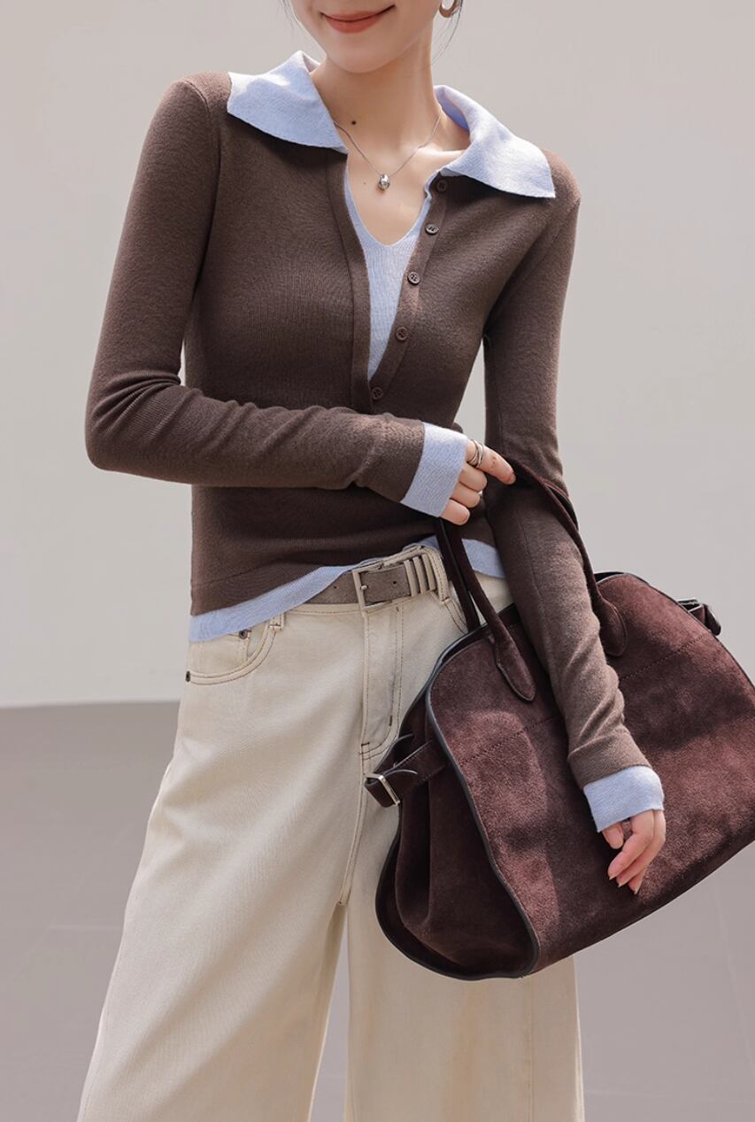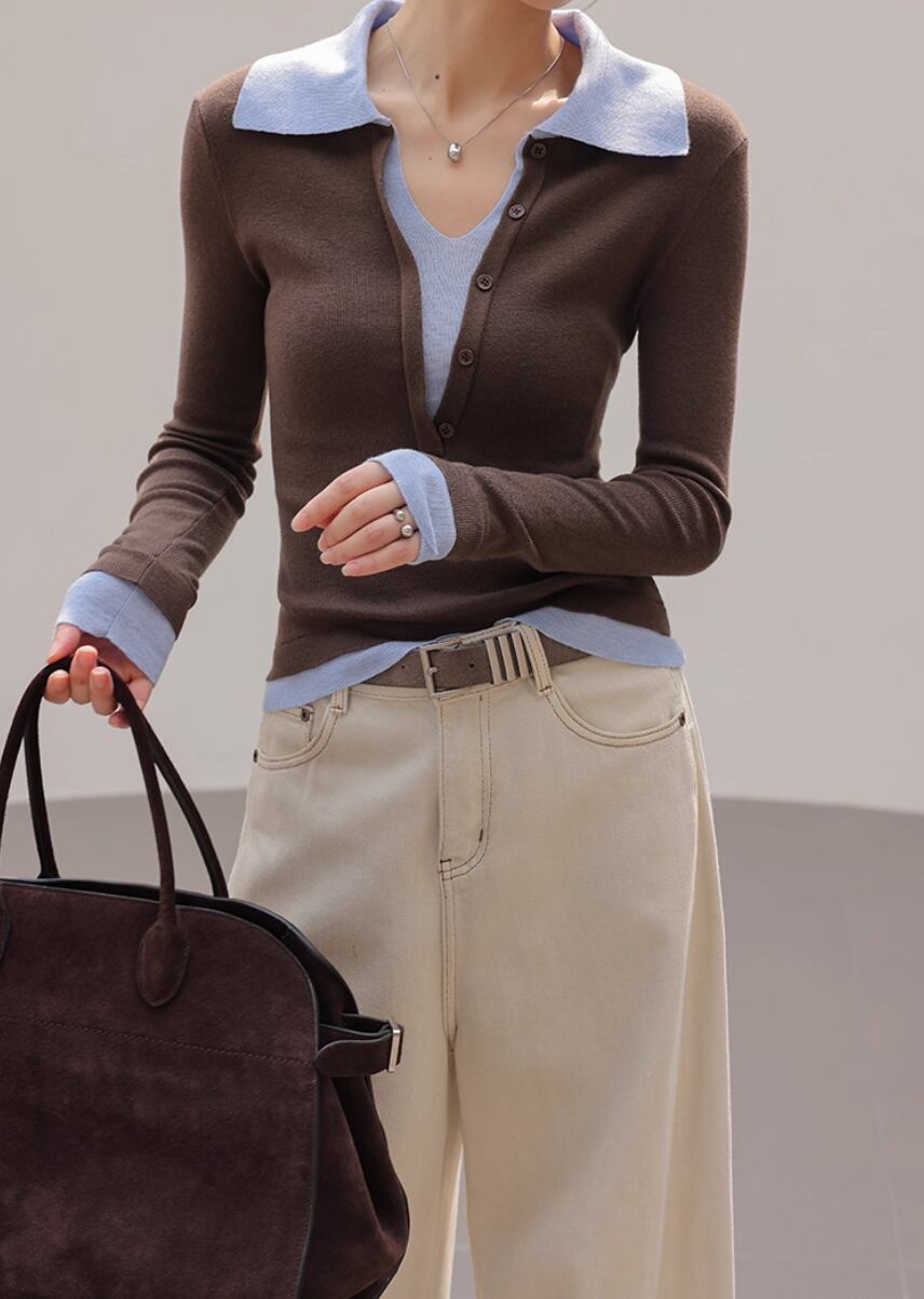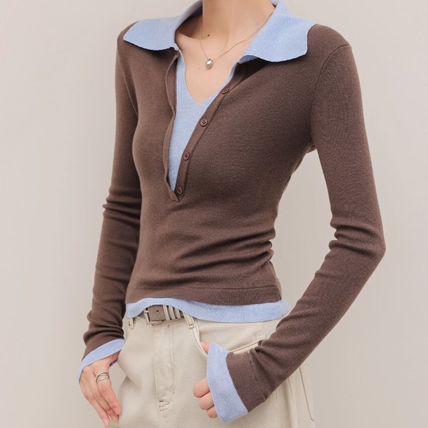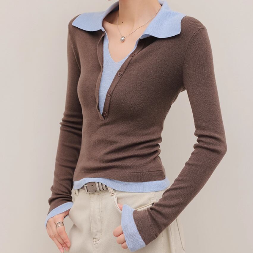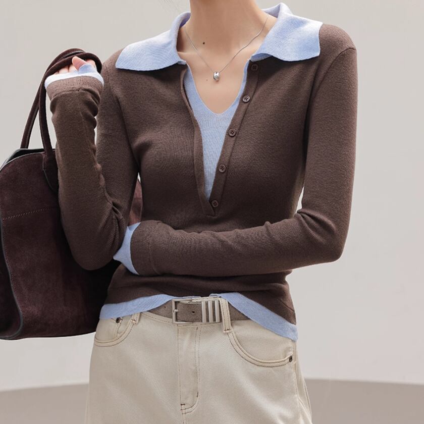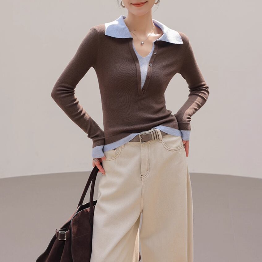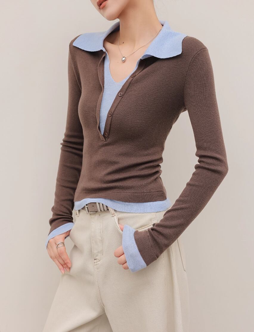 2色/袖リブバイカラーニット ・4059