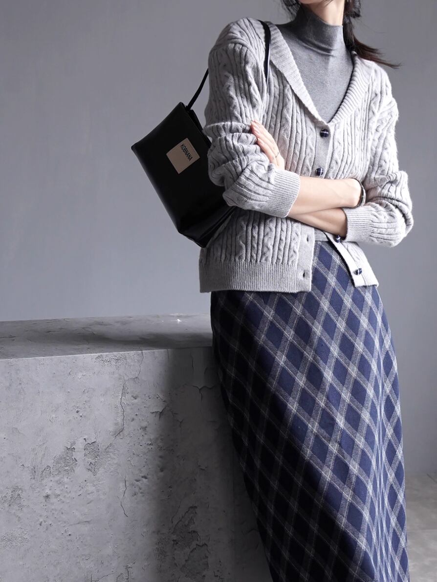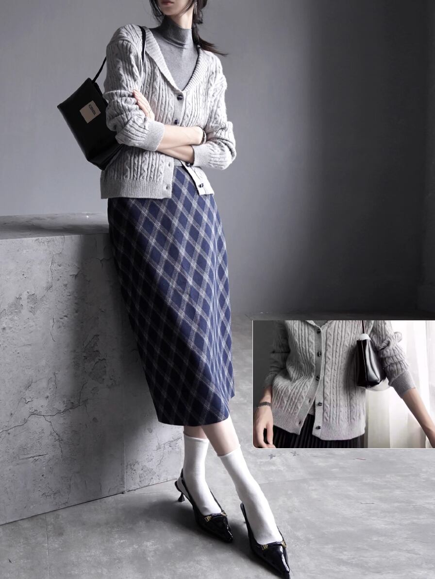 【2点セット】ケーブルニットカーディガン+スカート ・20018