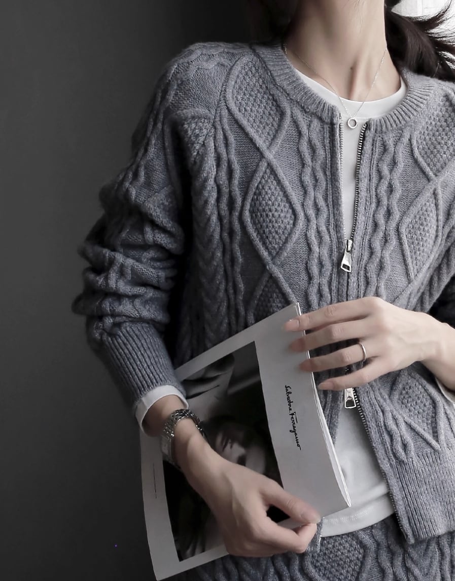 【2点セット】4色/Vネックニットトップス+ニットショール ・19992