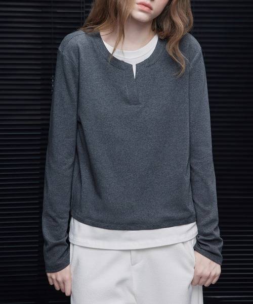 モックネックドレープトップス ・19792