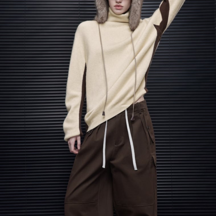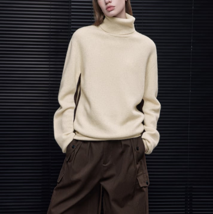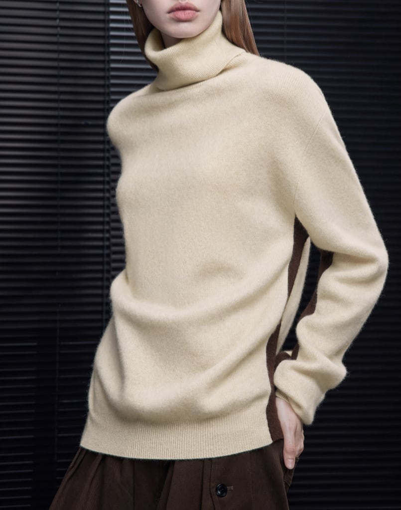 2色/袖リブバイカラーニット ・4059
