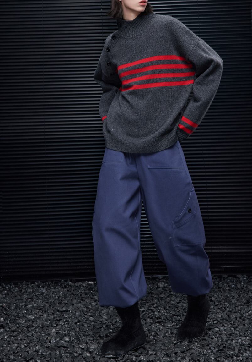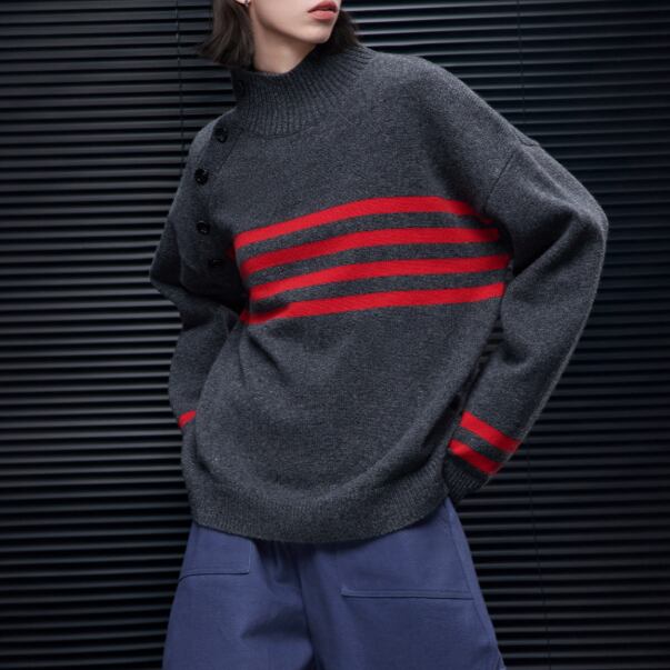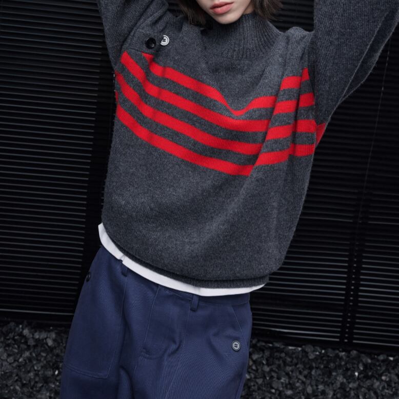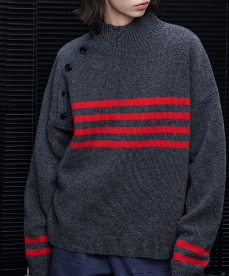 スタンドカラーハーフボタンセーター ・20051