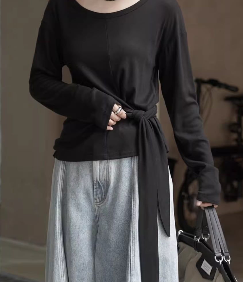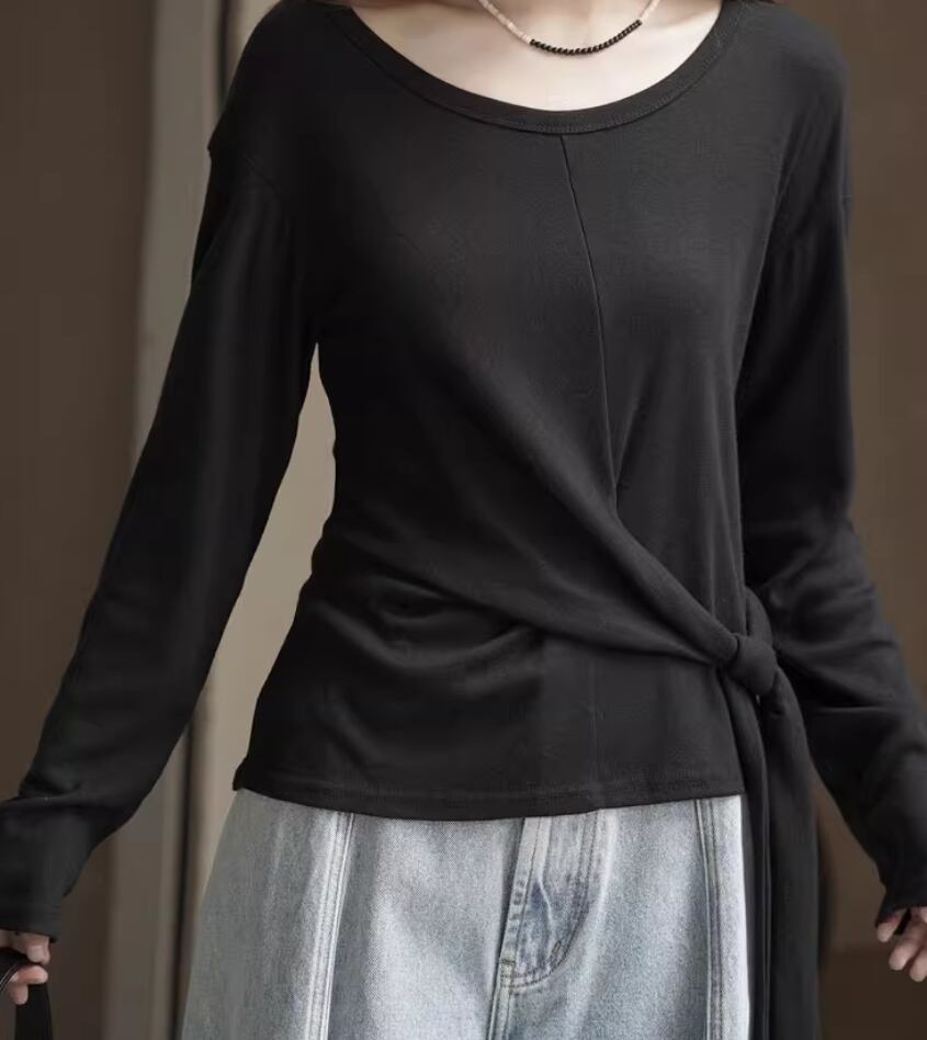 モックネックドレープトップス ・19792