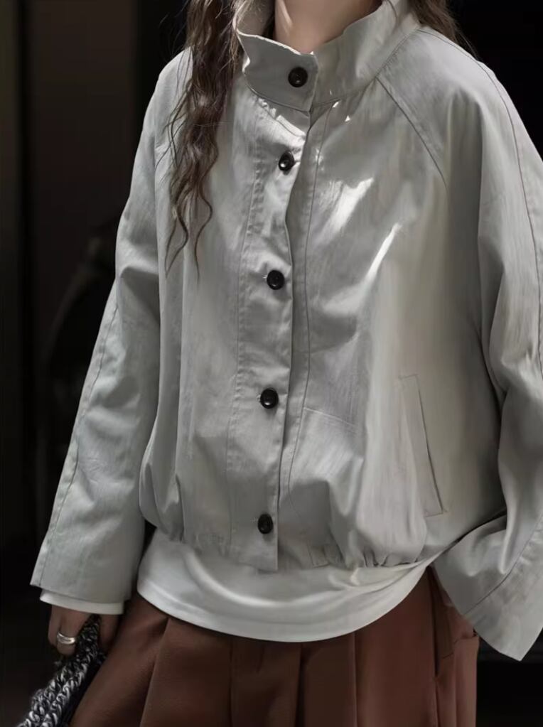 2色/PUレザーステンカラーコート ・19681
