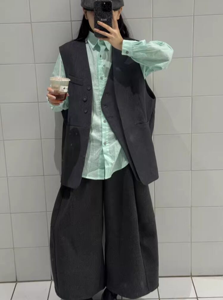 【2点セット】チェックシャツ+ニットベスト ・19815