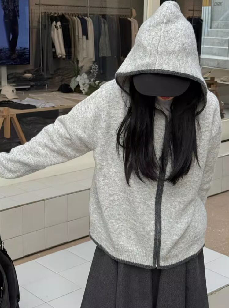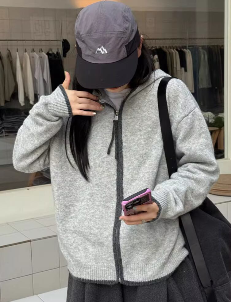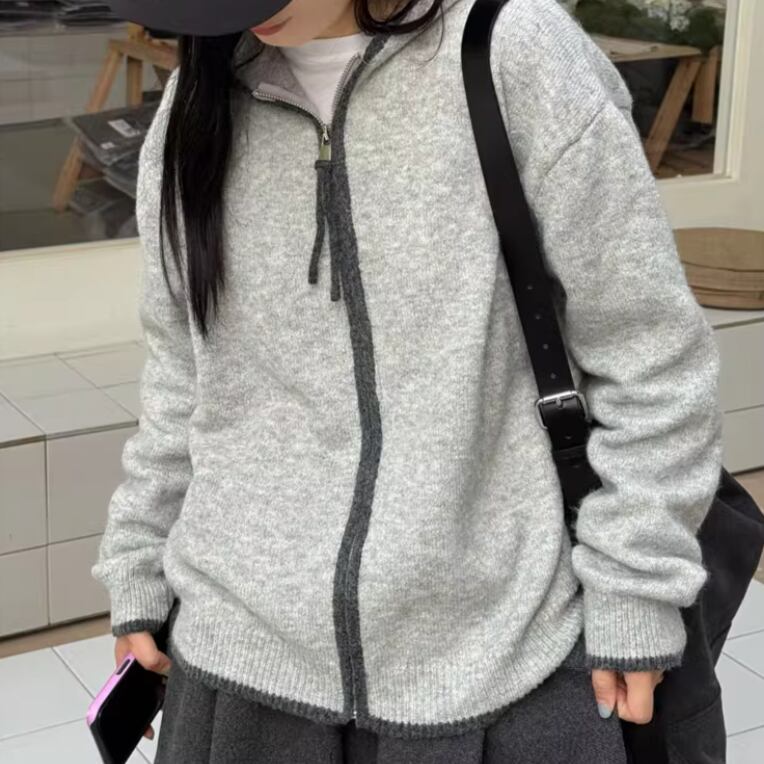 2色/袖リブバイカラーニット ・4059