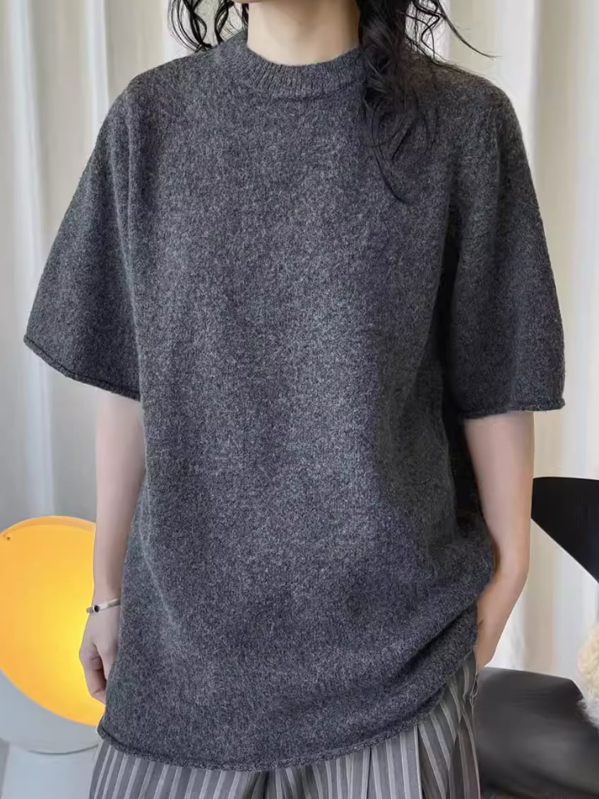 2色/袖リブバイカラーニット ・4059
