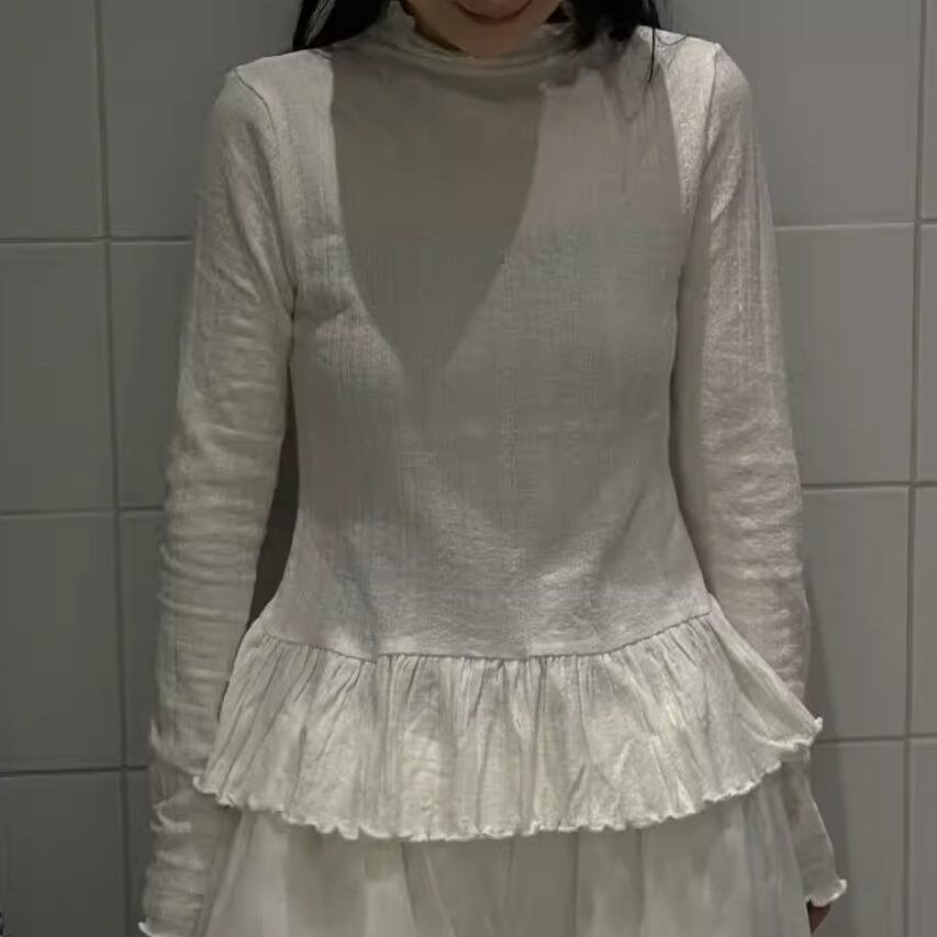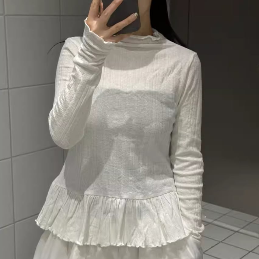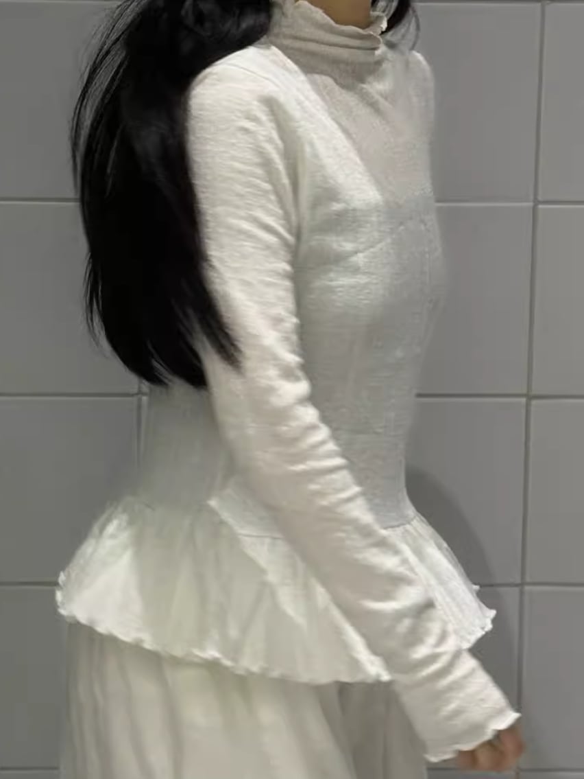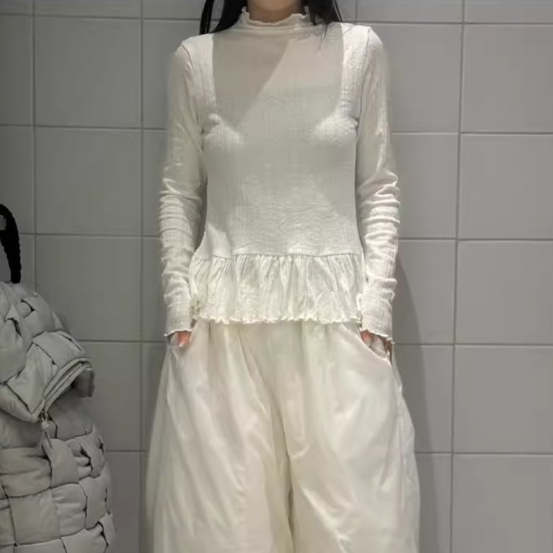 モックネックドレープトップス ・19792