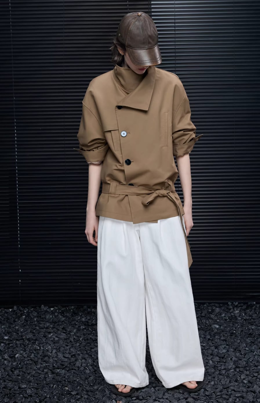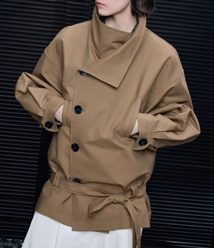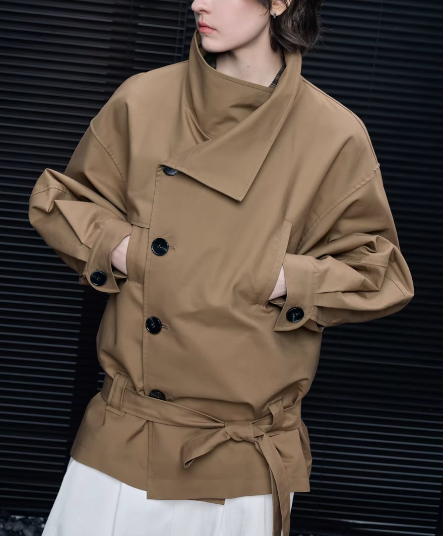 2色/PUレザーステンカラーコート ・19681