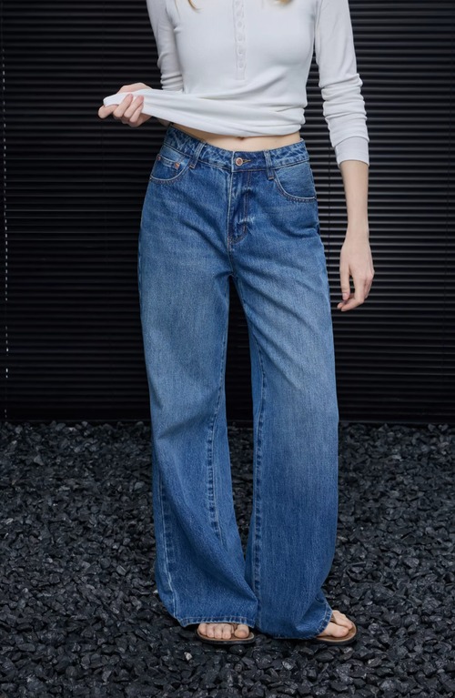 ボタンデザインワイドレッグデニムパンツ ・20967