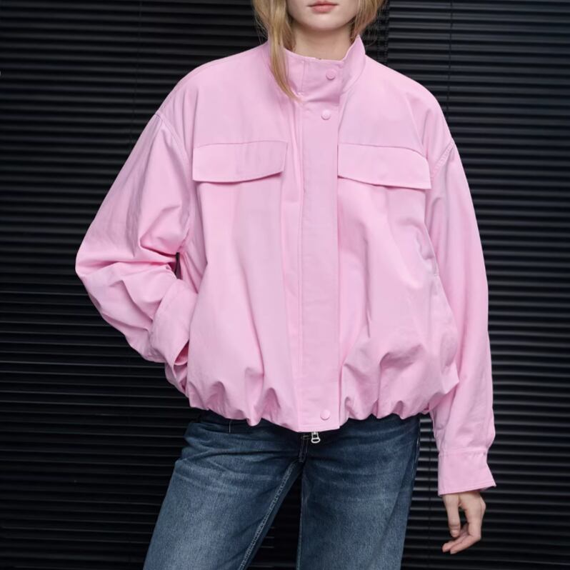 スタンドカラーデザインパファージャケット ・17709