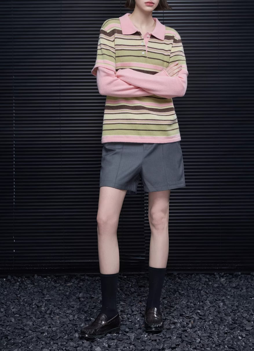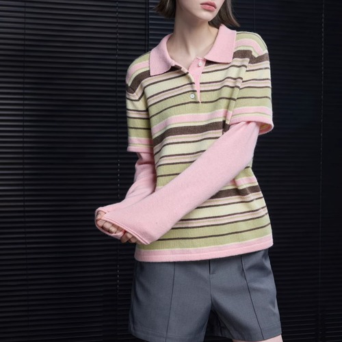 バイカラーヘンリーネックシャツ ・20953