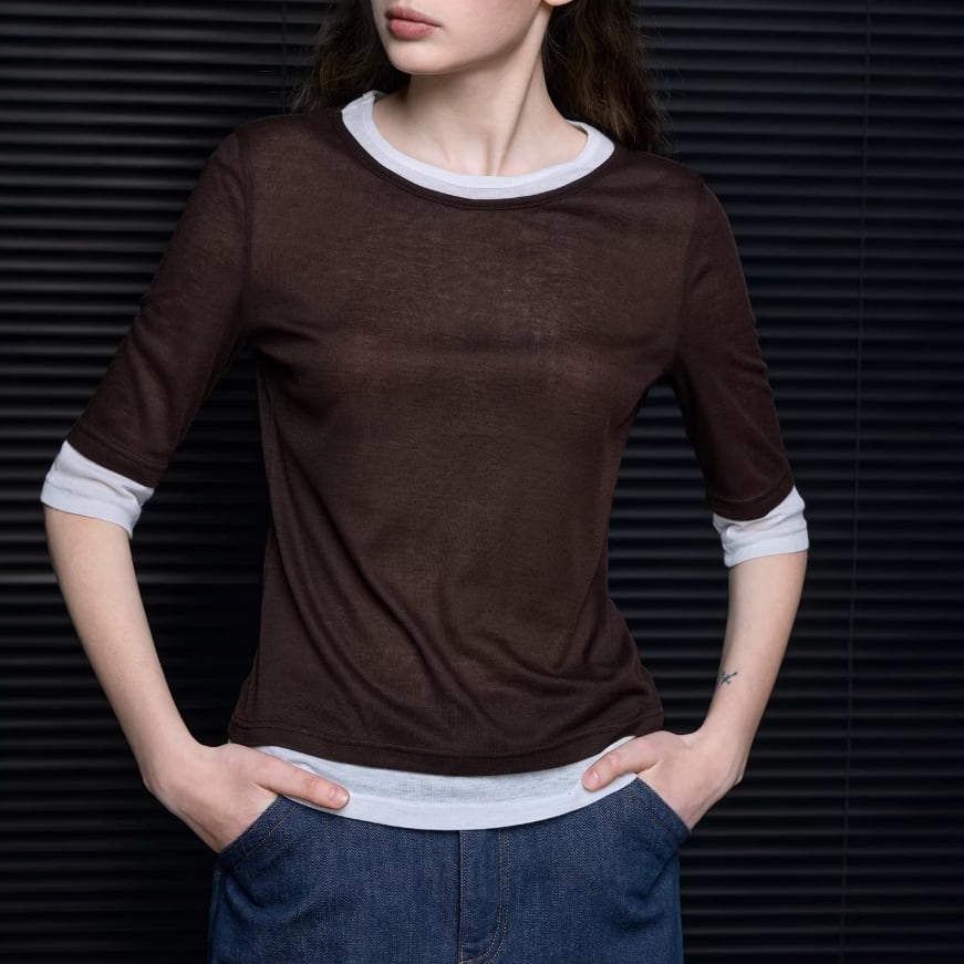モックネックドレープトップス ・19792