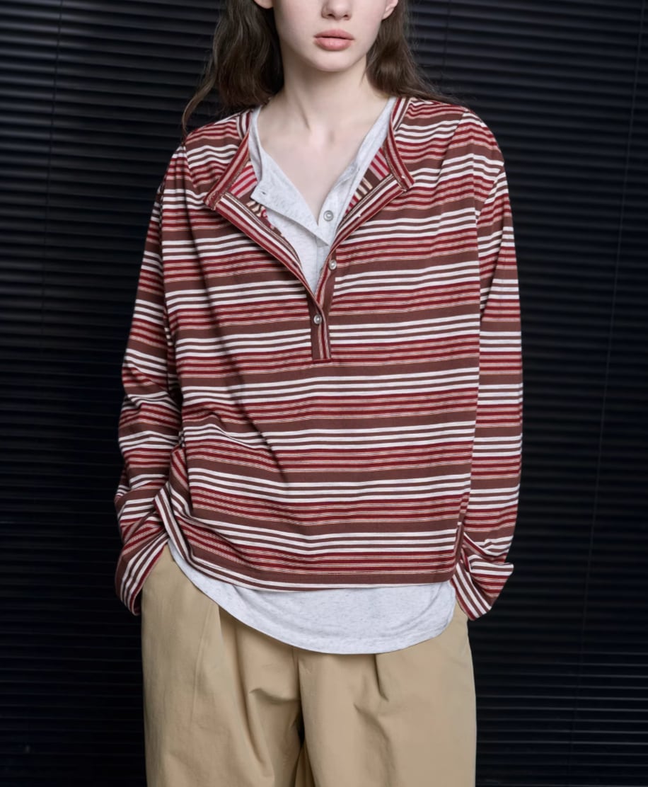 アシメデザインヘンリーネックシャツ ・21116