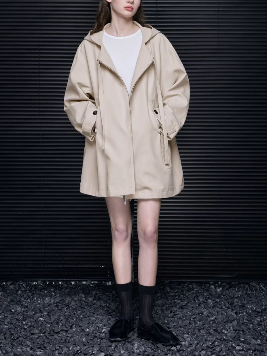 2色/PUレザーステンカラーコート ・19681