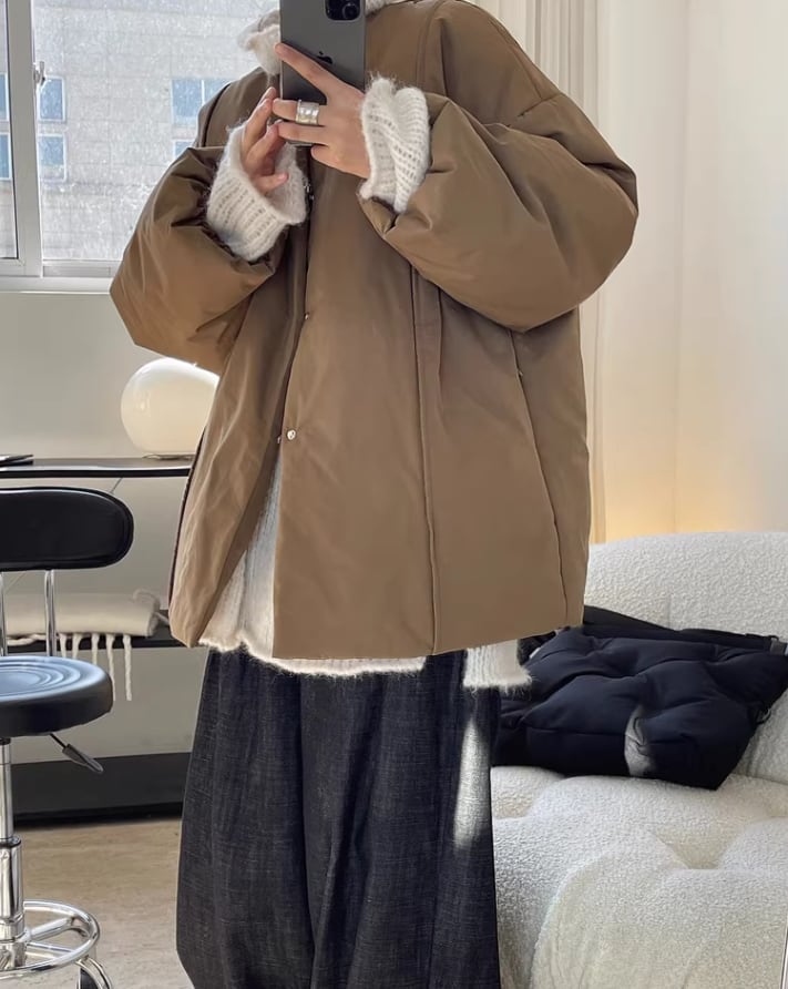 スタンドカラーデザインパファージャケット ・17709