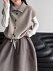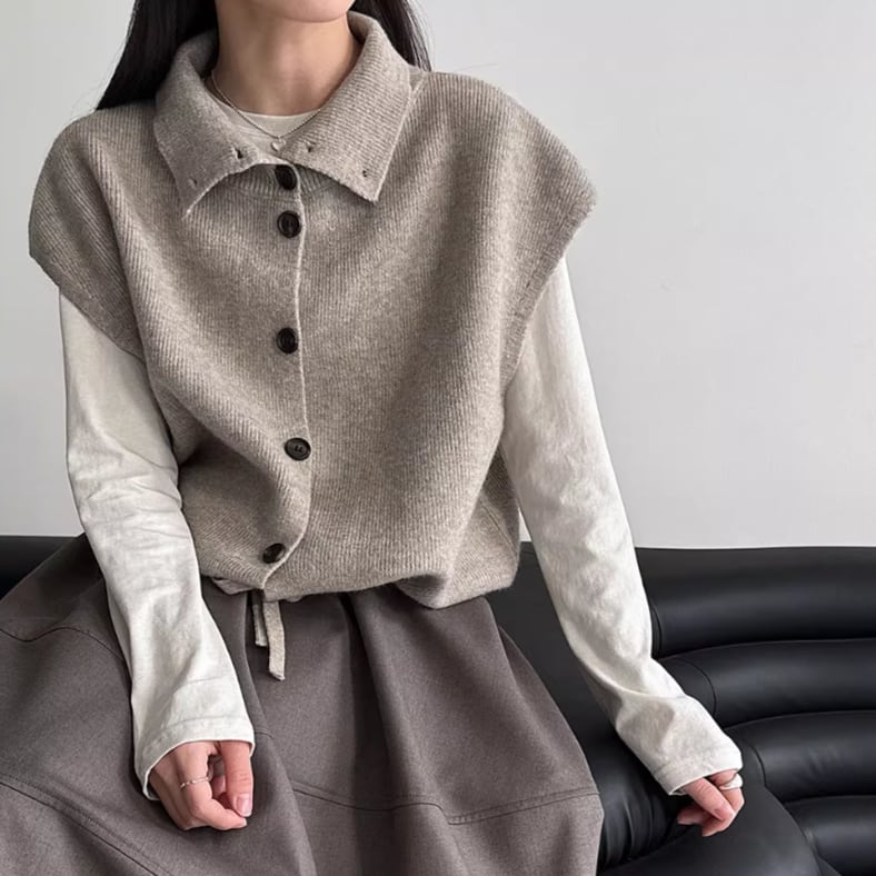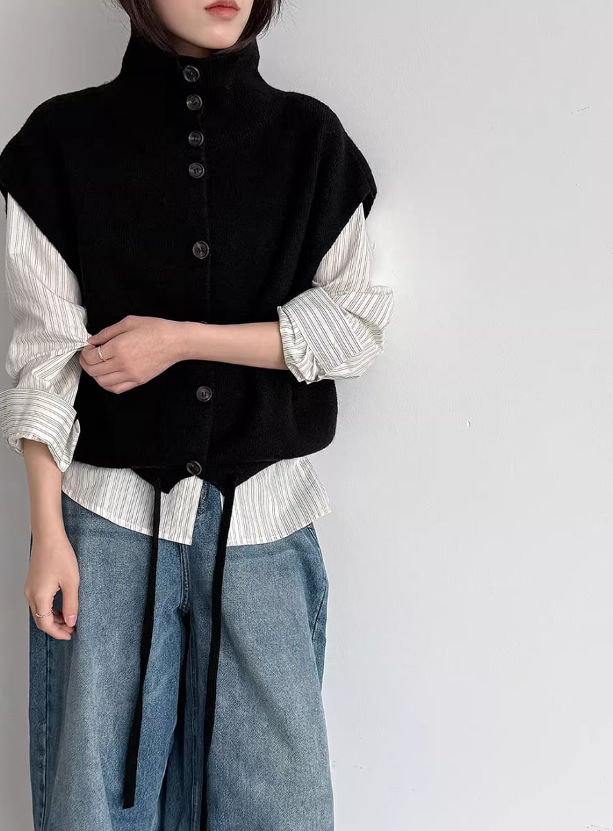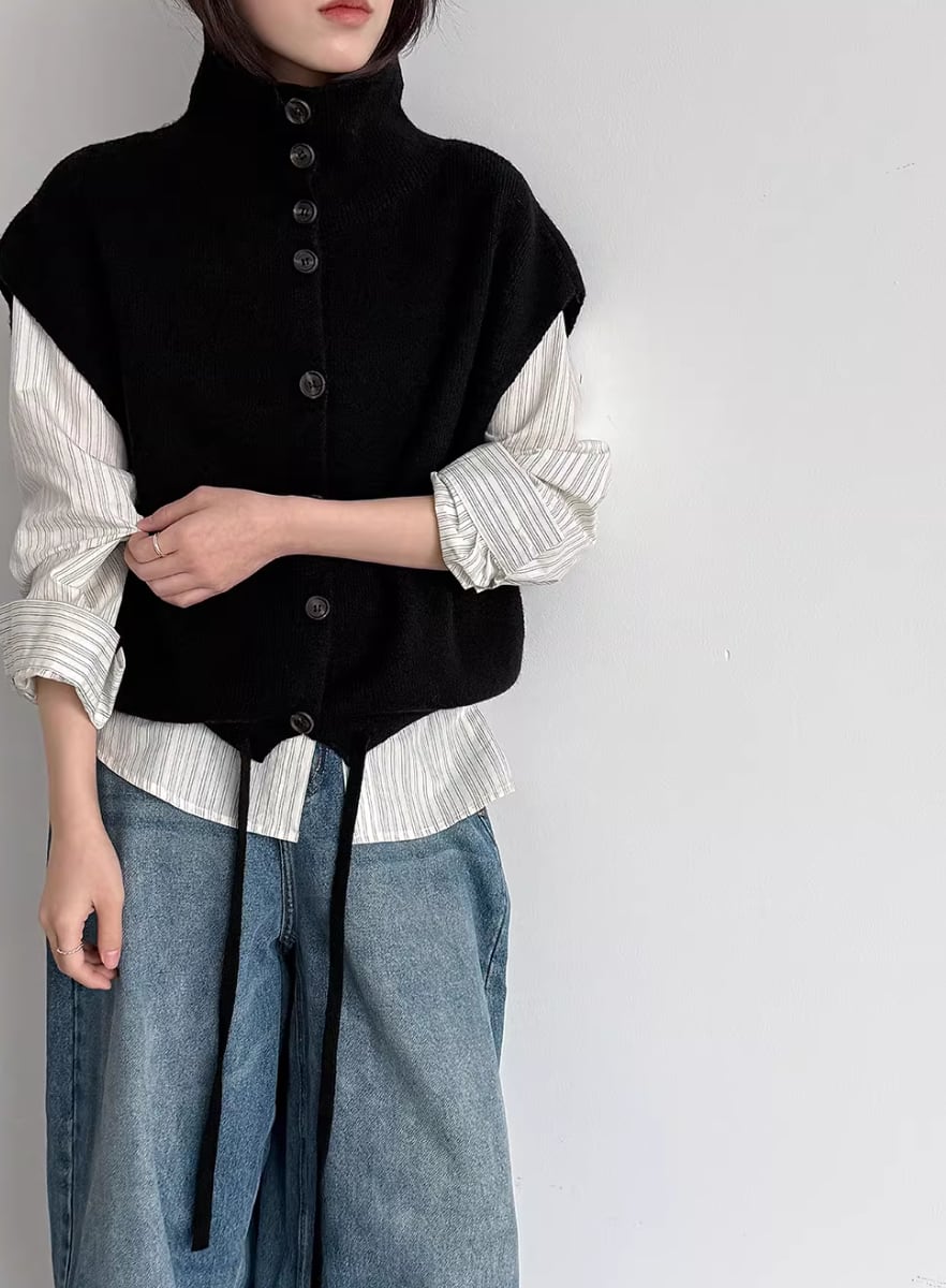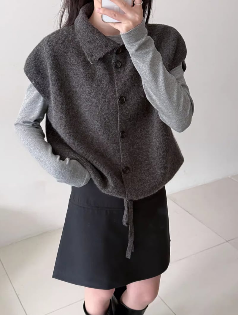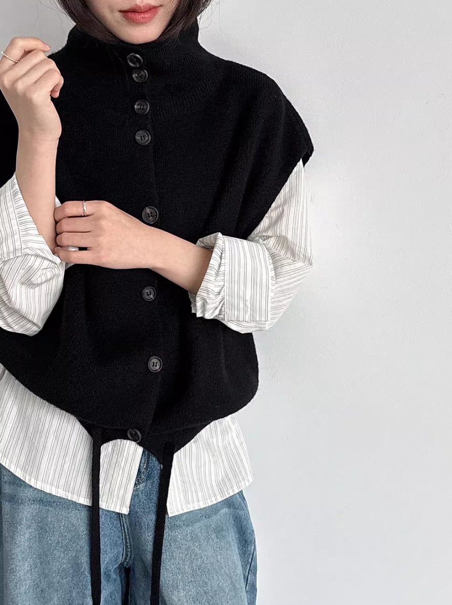 3色/フェイクレイヤードニットカーディガン ・18076