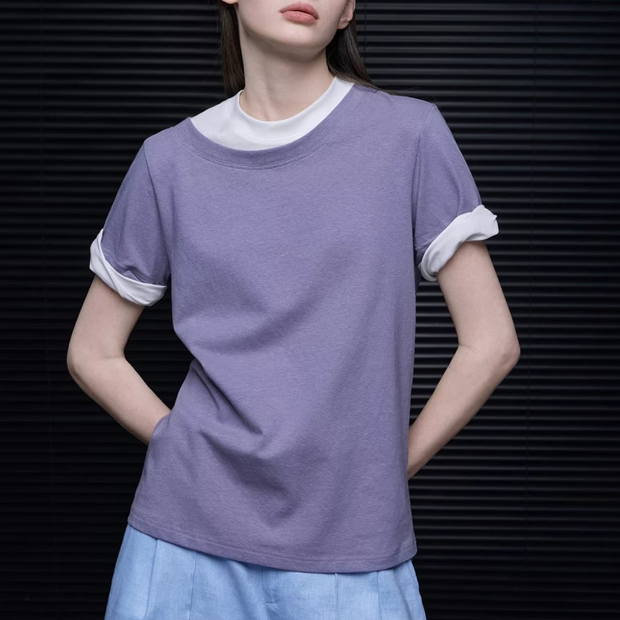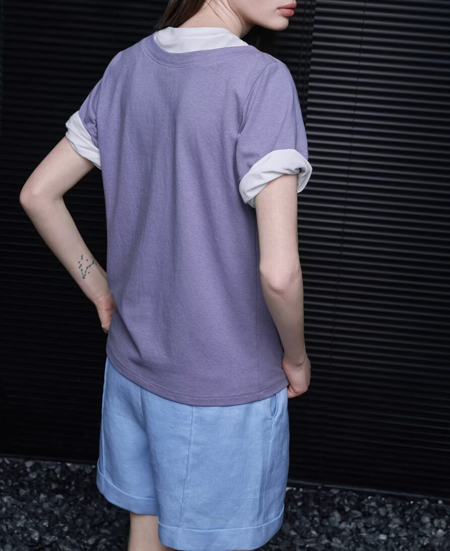 ダブルネックデザインTシャツ ・21414