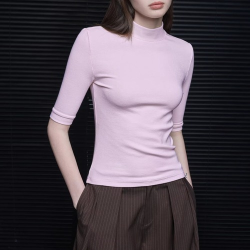 ハイネックハーフスリーブボーダートップス ・21403