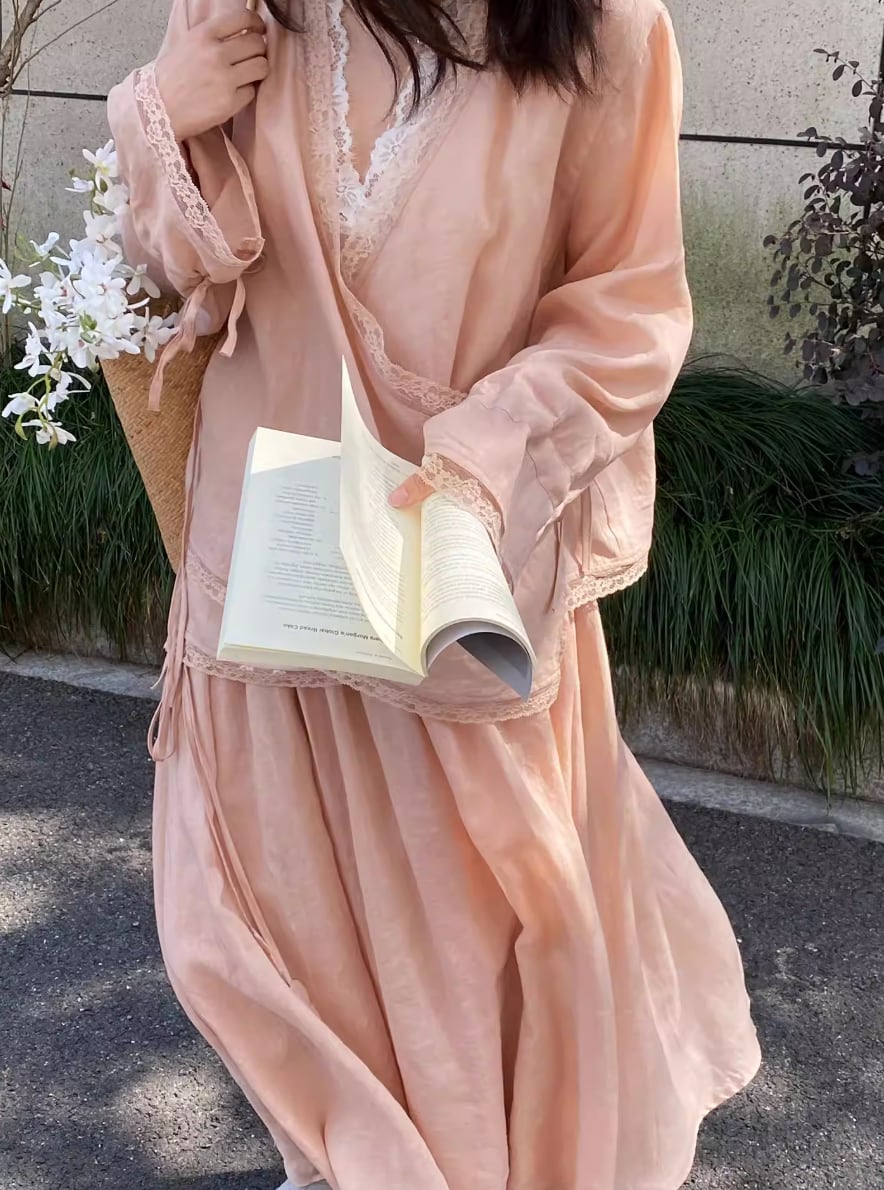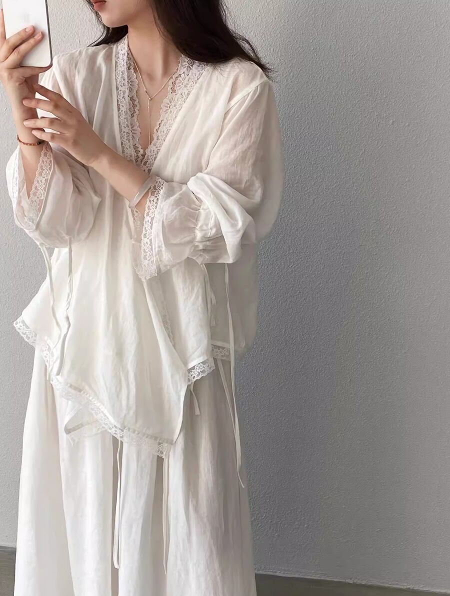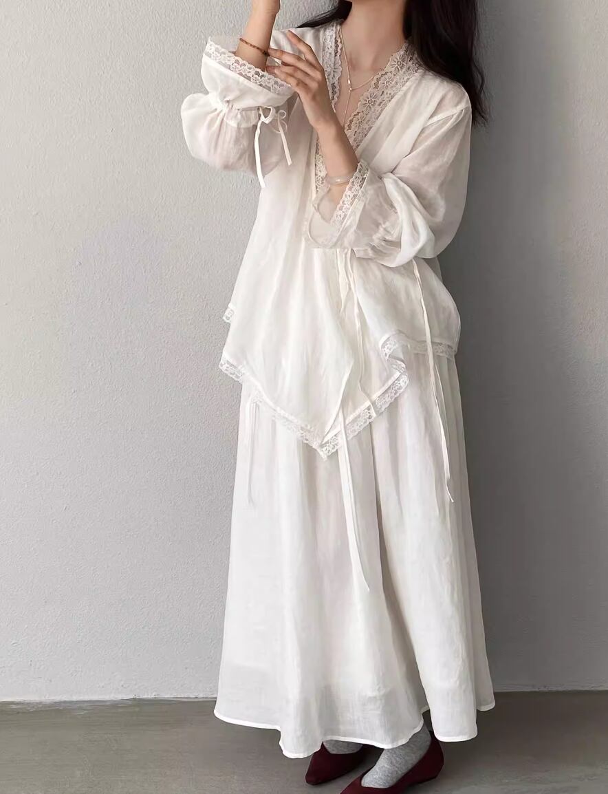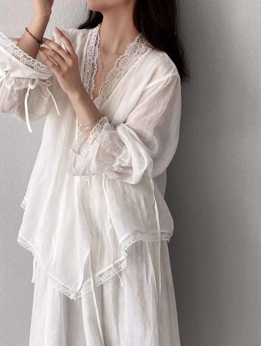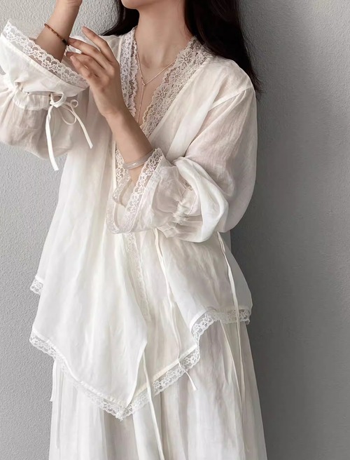 【2点セット】4色/Vネックニットトップス+ニットショール ・19992