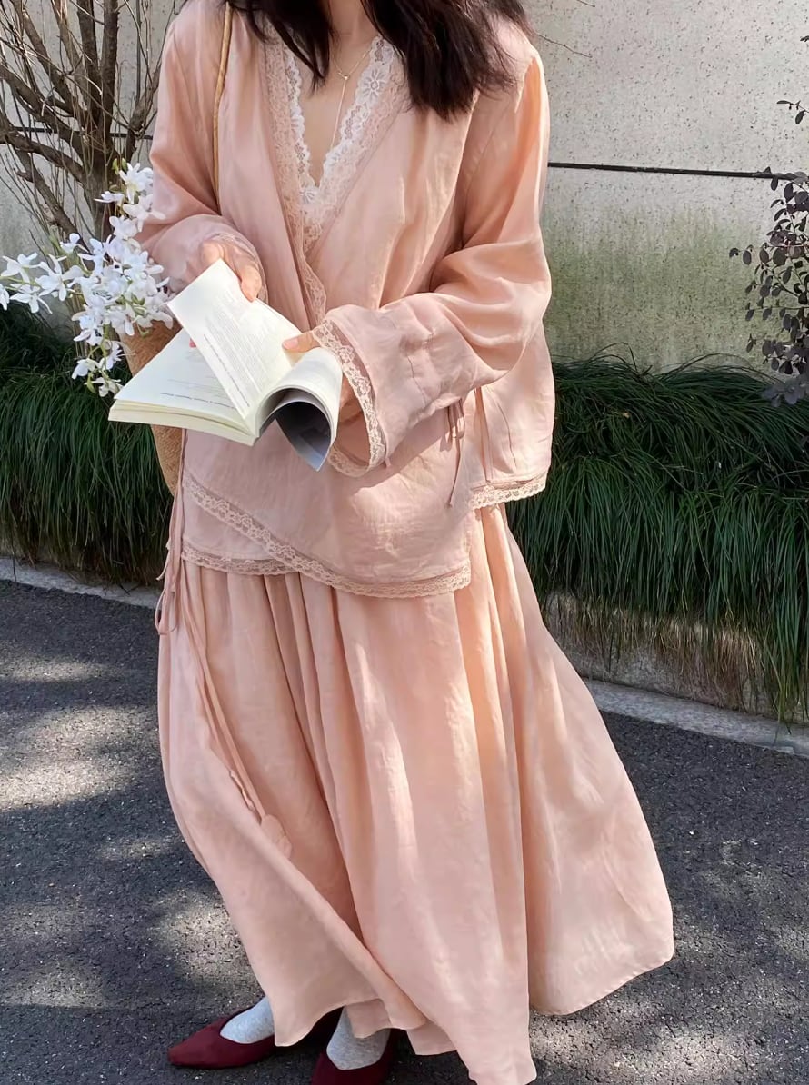 【2点セッ3色/ドロップショルダーシャツ+プリーツスカート ・21471