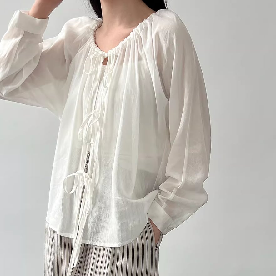 モックネックドレープトップス ・19792