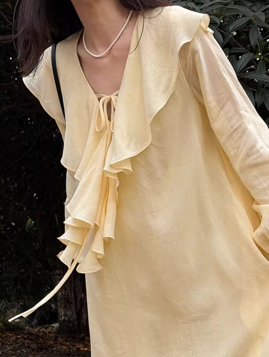 ▽Instagram「新作情報配信中」 フォローお願いいたします。 https://www.instagram.com/stir.clothes/ ▼カラー ライトイエロー(画像2枚目) ホワイト(画像3枚目) ピンク(画像4枚目) ▼サイズ [ Mサイズ ] 着丈114cm バスト100cm 肩幅36cm 袖丈60cm 裾囲り176cm [ Lサイズ ] 着丈115cm バスト104cm 肩幅38cm 袖丈61cm 裾囲り180cm ※1-3cm程度の誤差がある場合がございます。予めご了承ください。 ▼素材 レーヨン、リヨセル混紡 ▼シーズン 春,夏 ▼同じカテゴリの商品はこちら https://www.stir.jp/categories/3047420 ▽お支払い方法 ・クレジットカード決済 ・キャリア決済 (docomo/au/Softbank/Y!mobile) ・後払い決済 (商品お届け後コンビニ払いなど) ▽注意点 ※こちらの商品は決済から10日-3週間前後でのお届けとなります。 ※配送日時指定等に関しては、ご指定できないことご了承くださいませ。 ※できる限り早くお届けできるように手配させて頂きます。 ※検品はしておりますが、もし届いた商品に不備がありましたら、誠実に対応させていただきます。 商品ID:ST021472