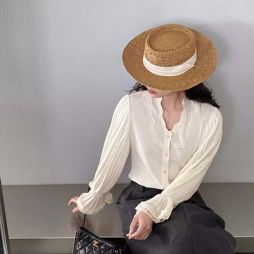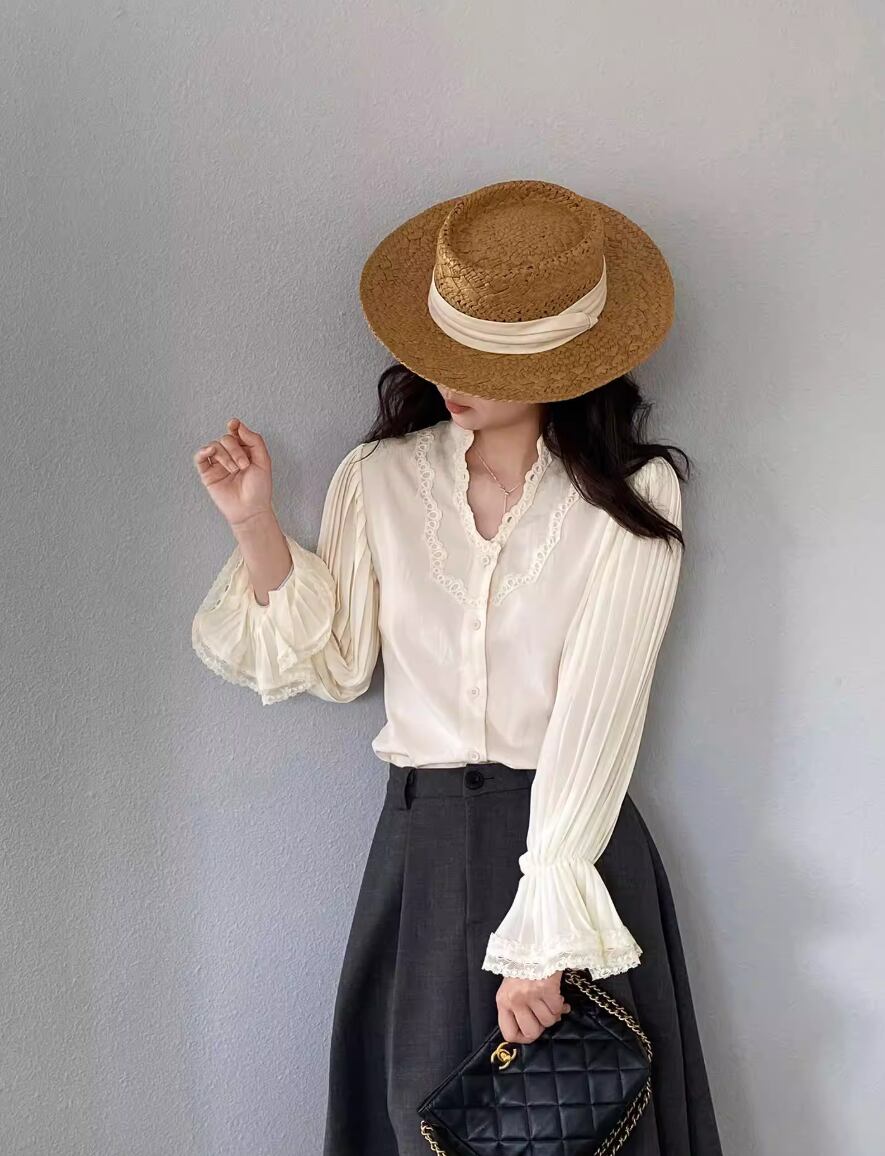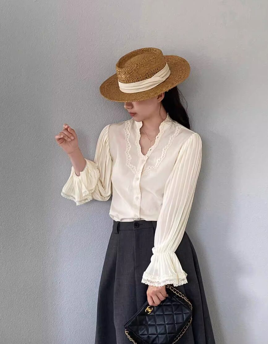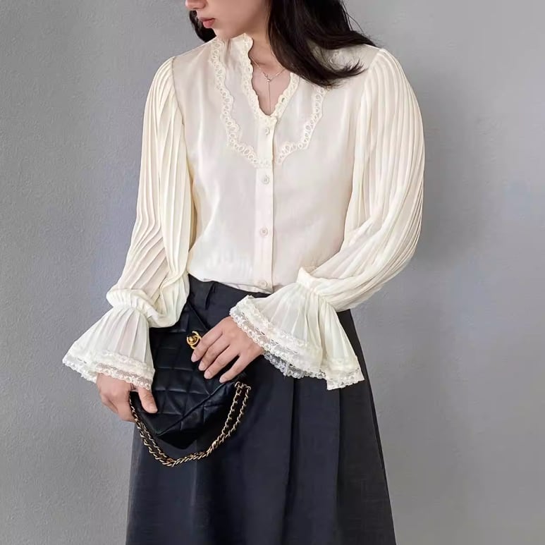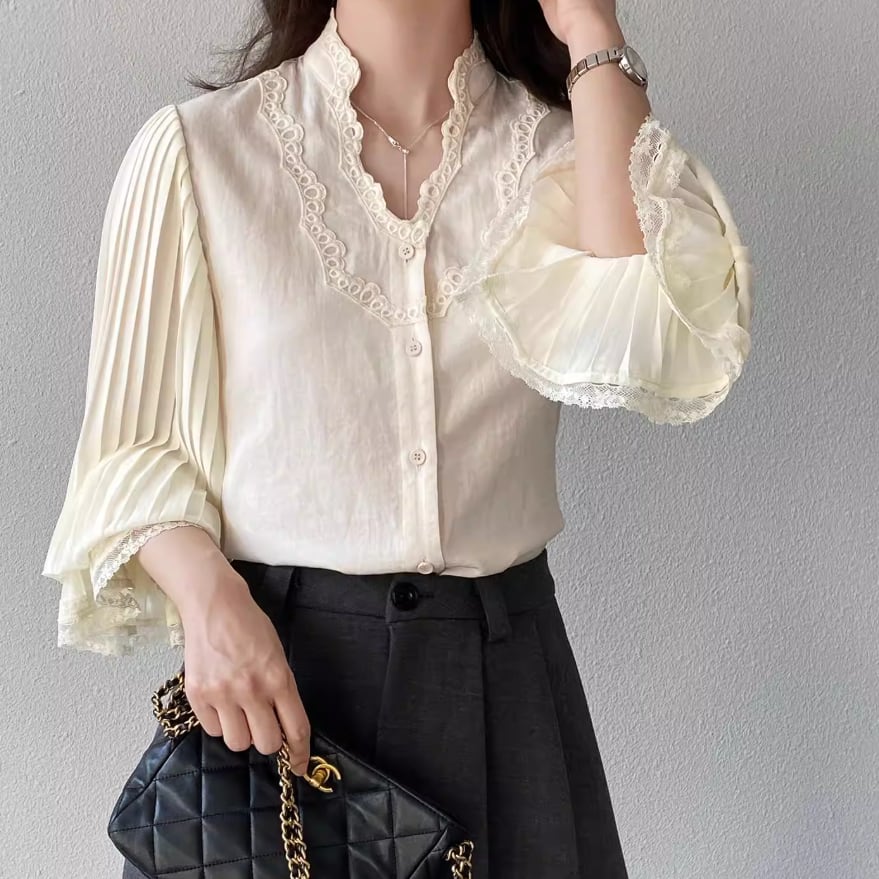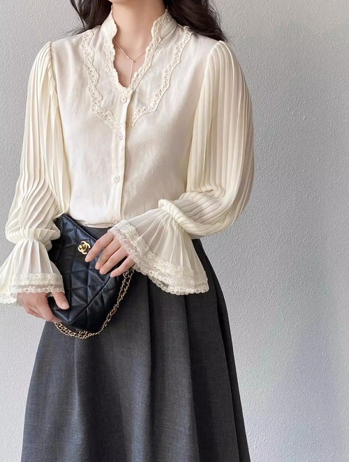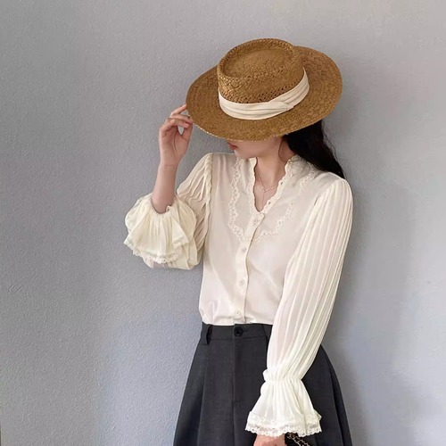 フリルネックブラウス ・21504