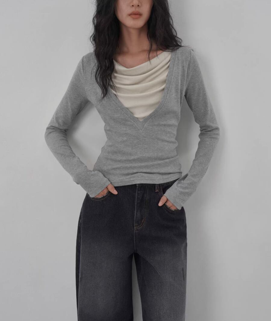 【2点セット】ドレープデザイントップス+ロングスカート ・21738