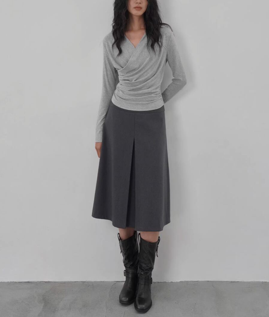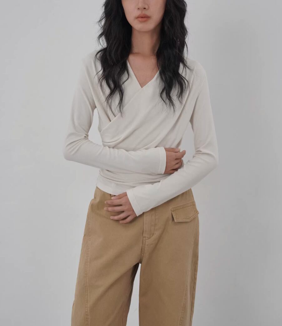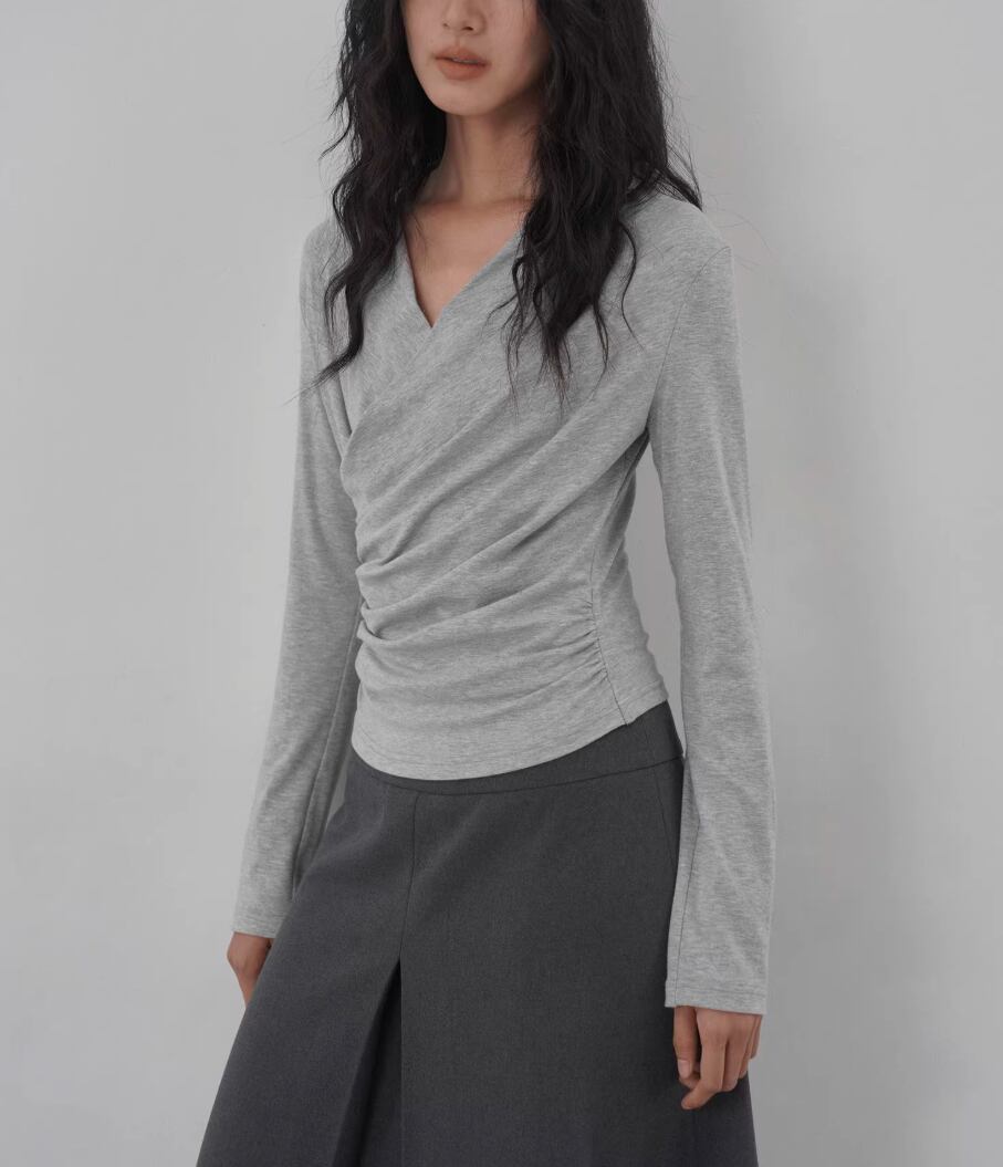 モックネックドレープトップス ・19792