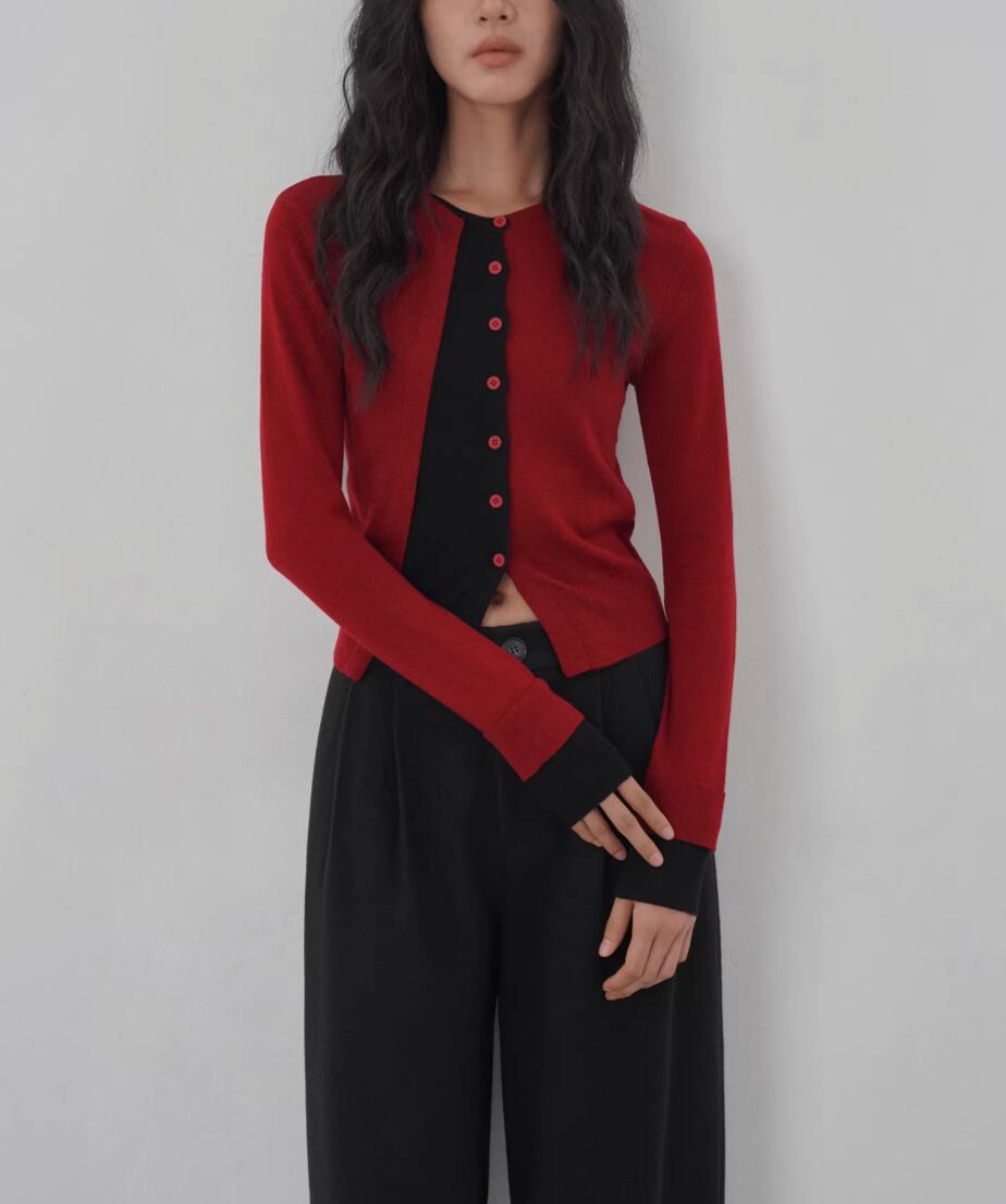 3色/フェイクレイヤードニットカーディガン ・18076