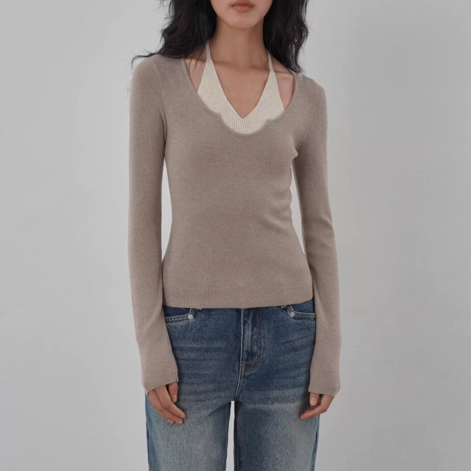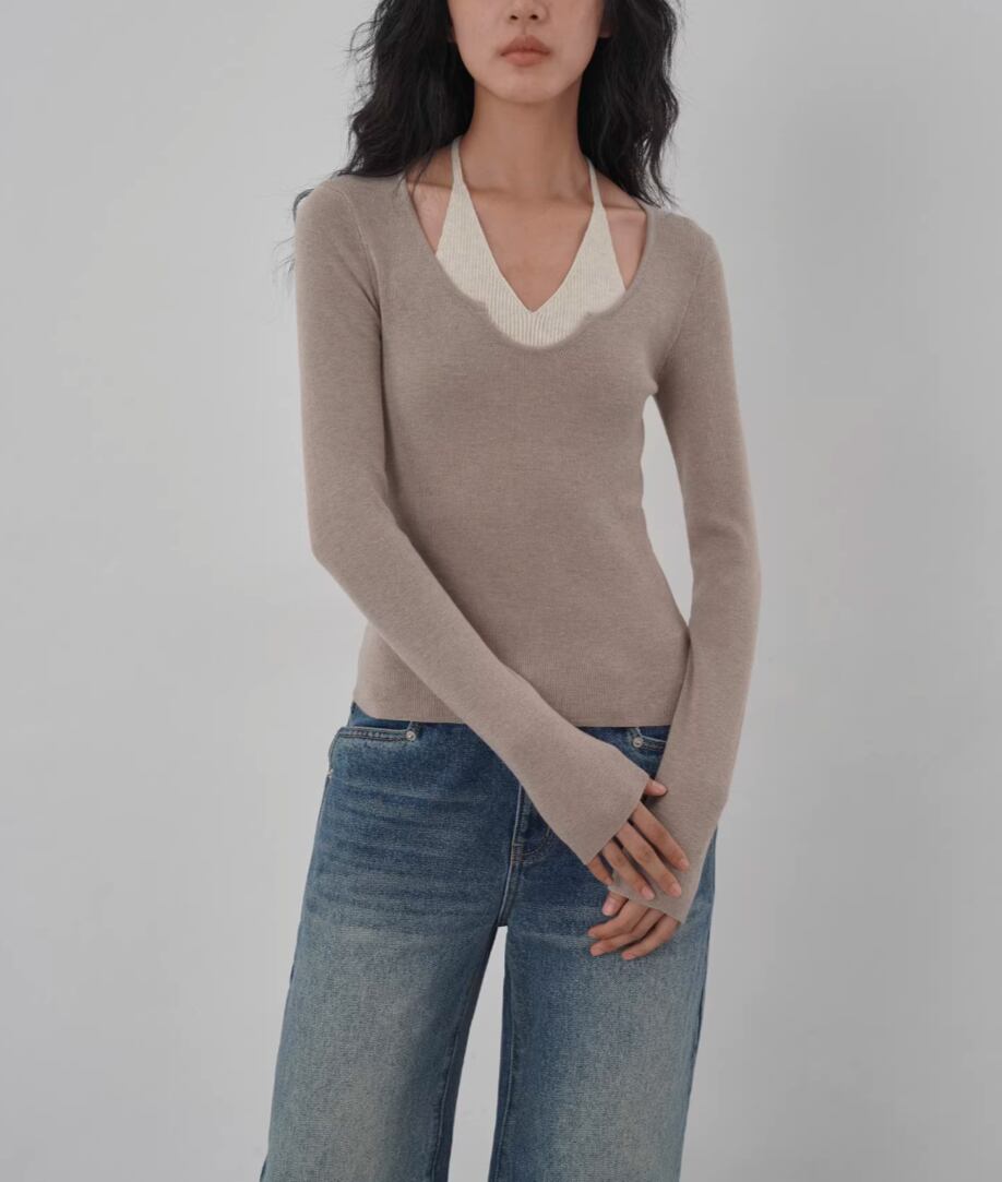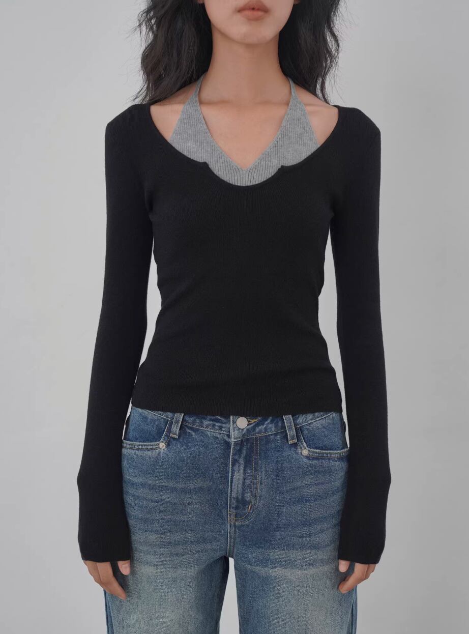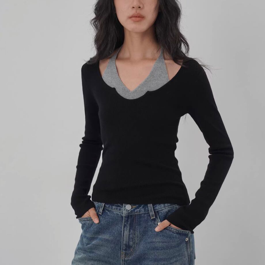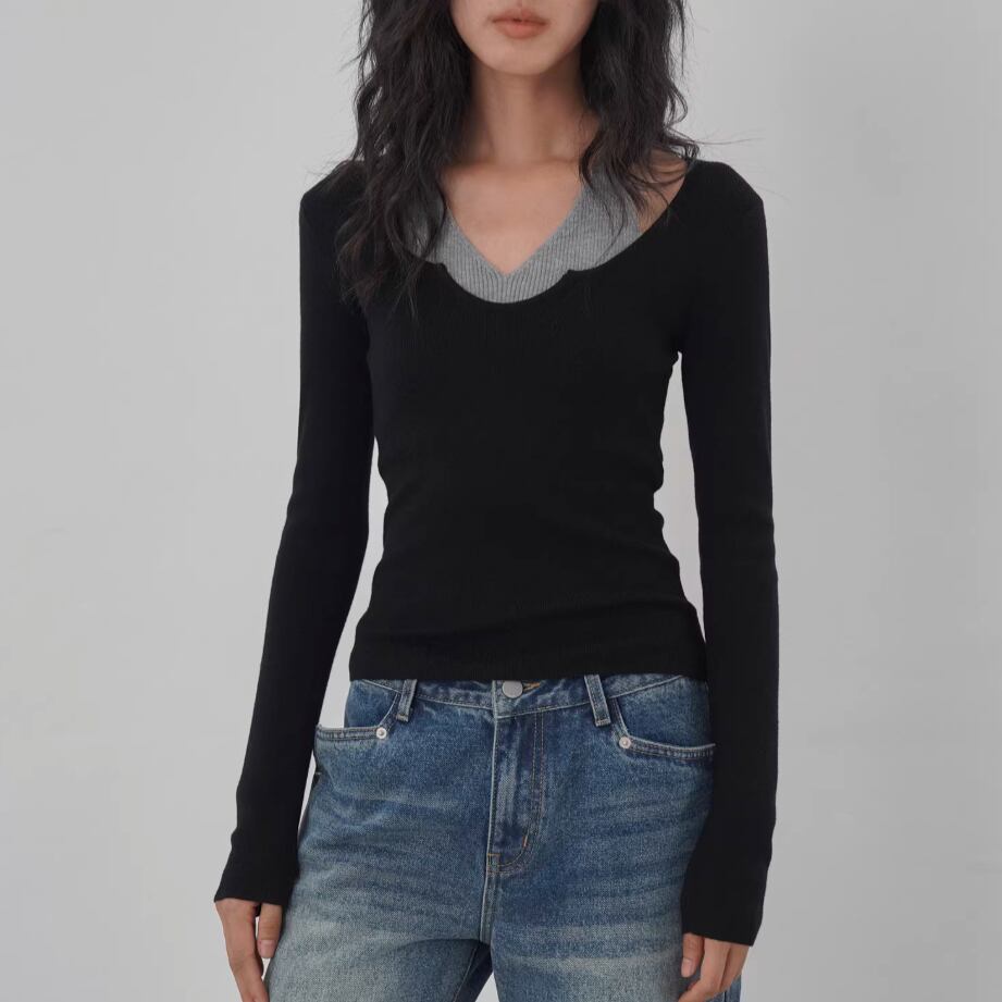 モックネックドレープトップス ・19792