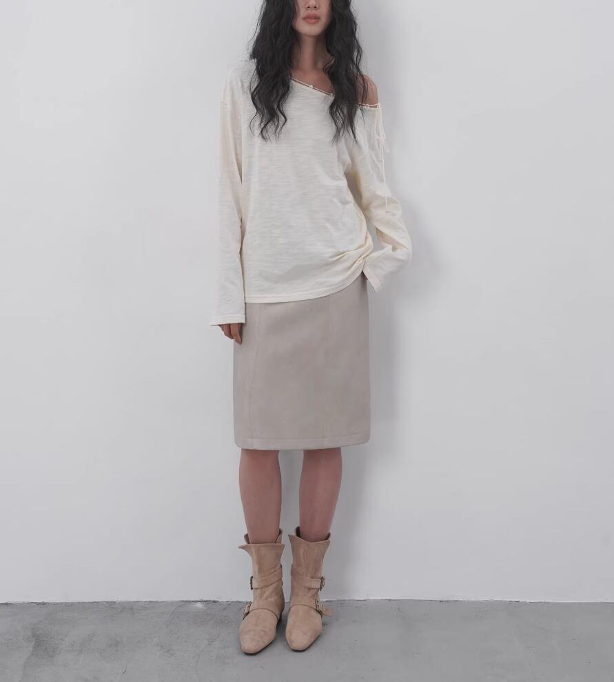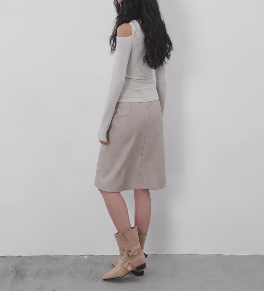【2点セット】クロップドジップアップトップス+ドロストヘムスカート ・21567