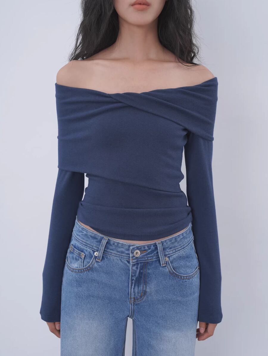 2色/アシメデザインオフショルトップス ・21580