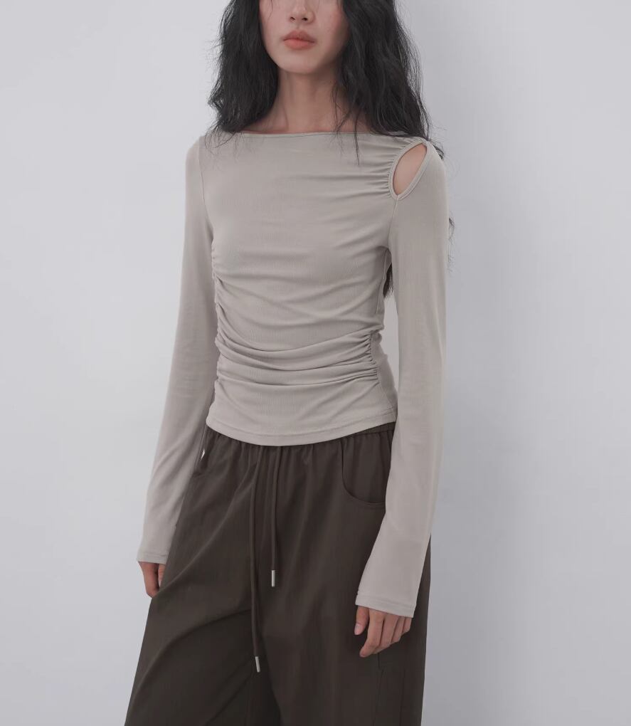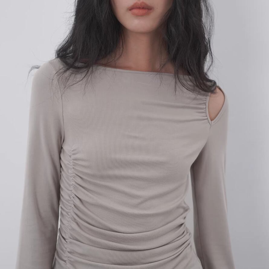 モックネックドレープトップス ・19792