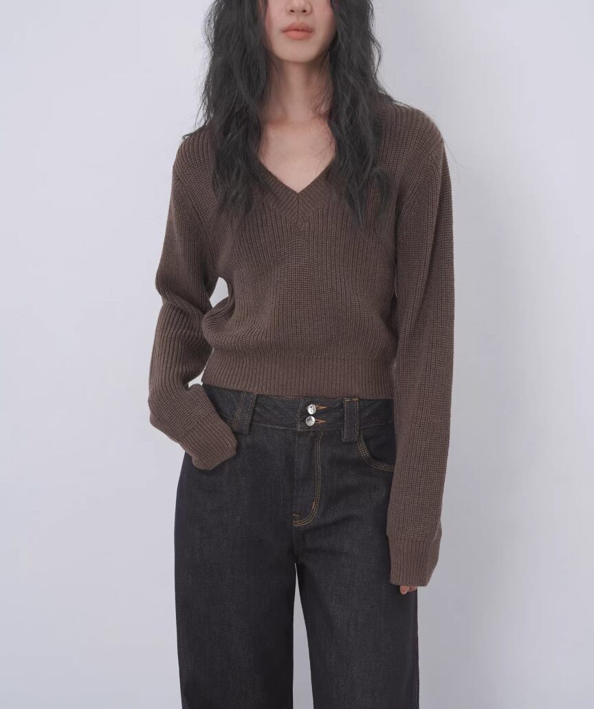 2色/袖リブバイカラーニット ・4059