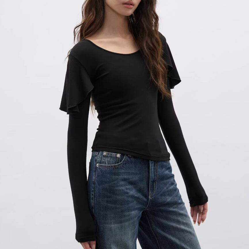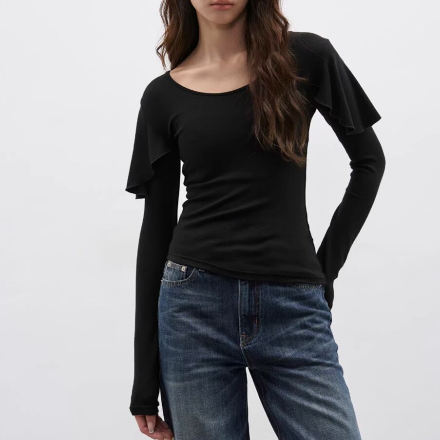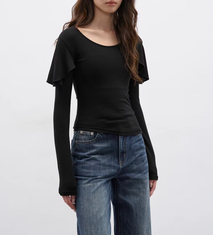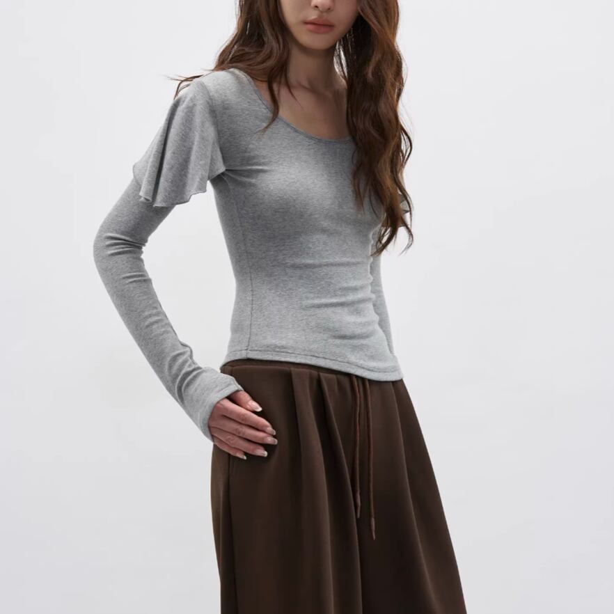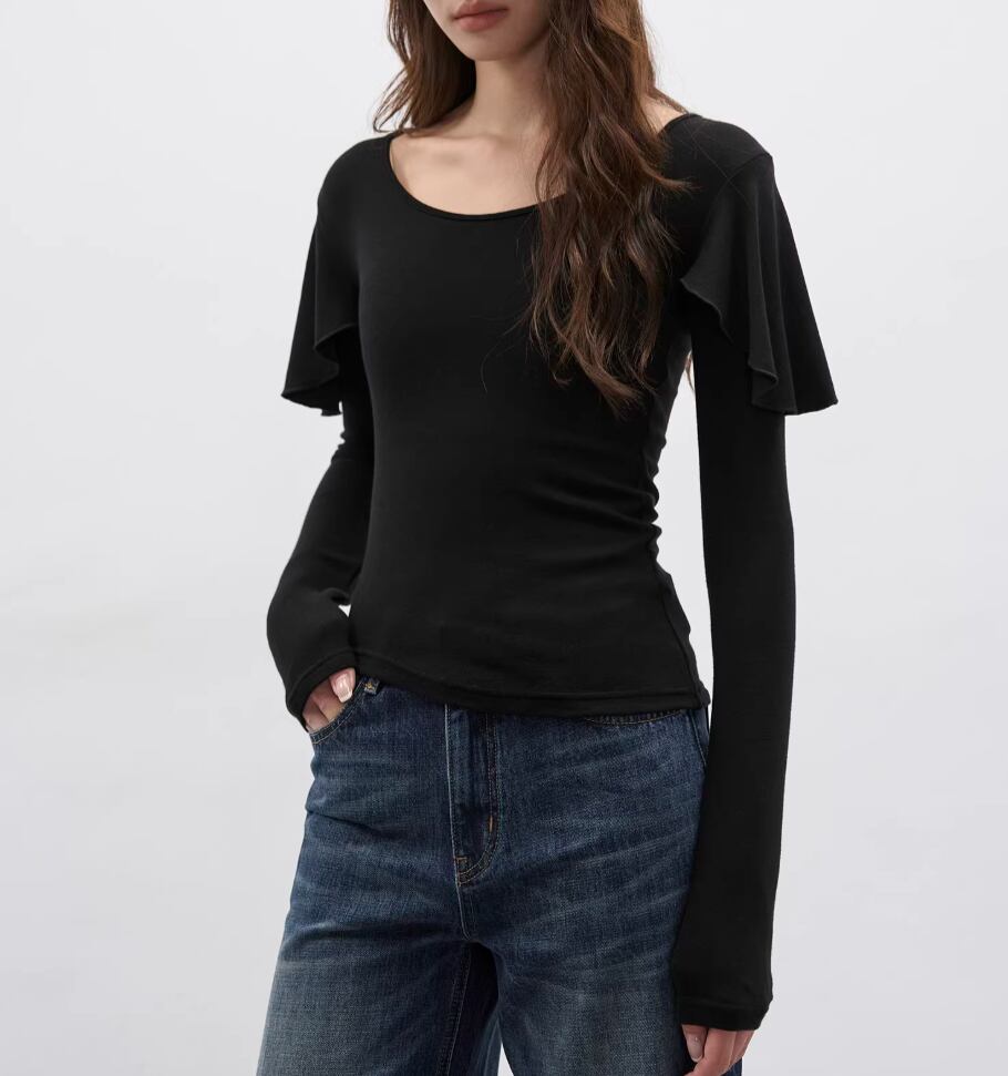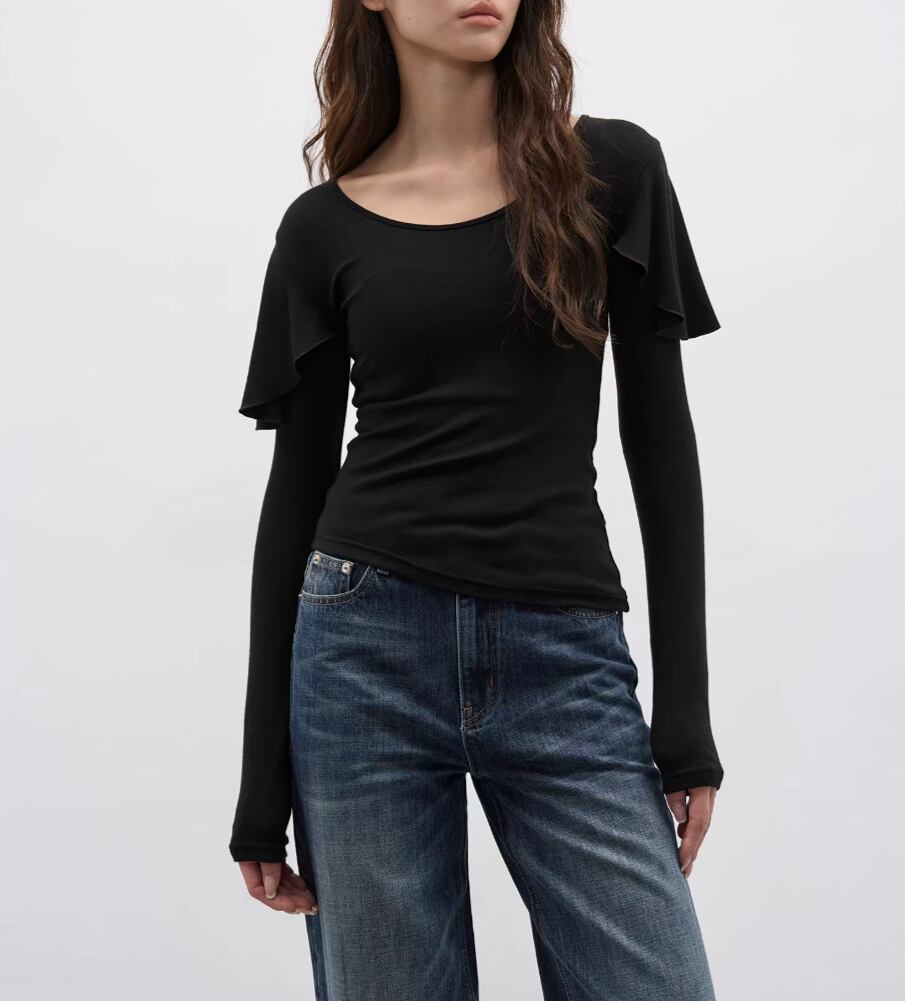 モックネックドレープトップス ・19792