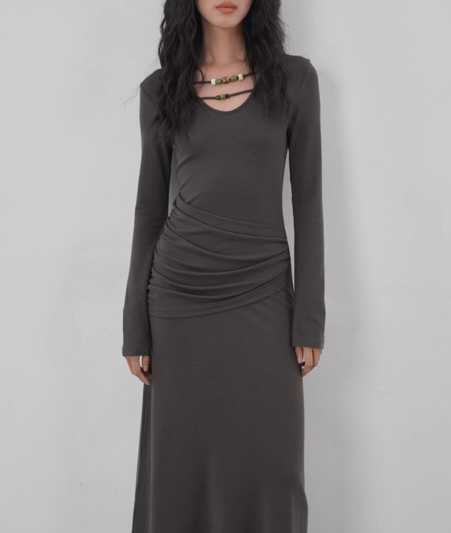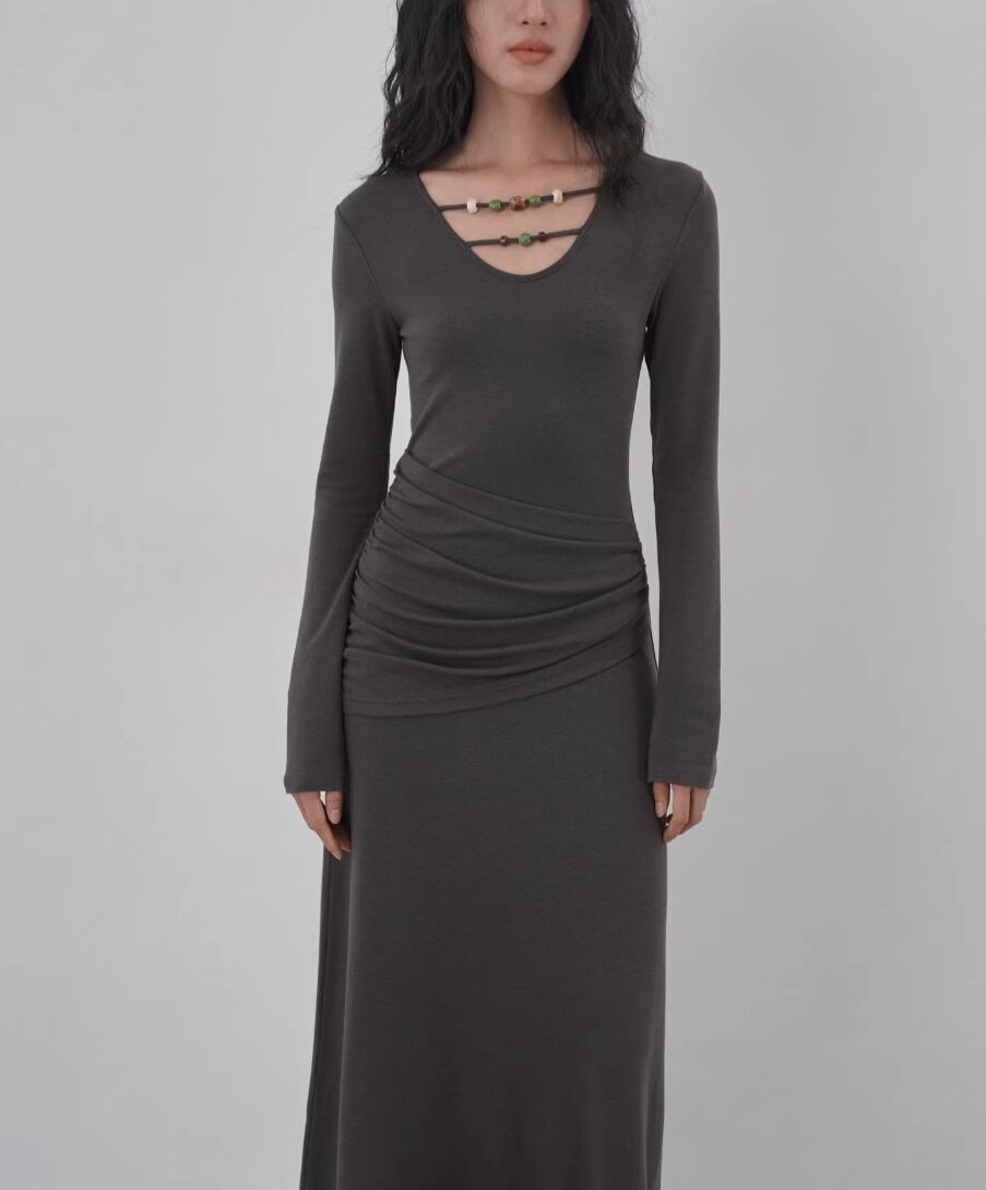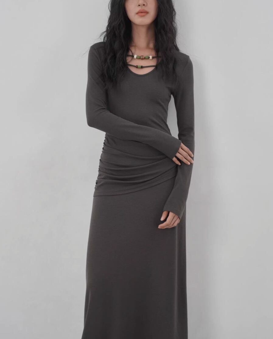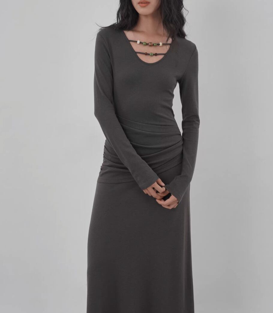 【2点セット】ドレープデザイントップス+ワンピース ・21648