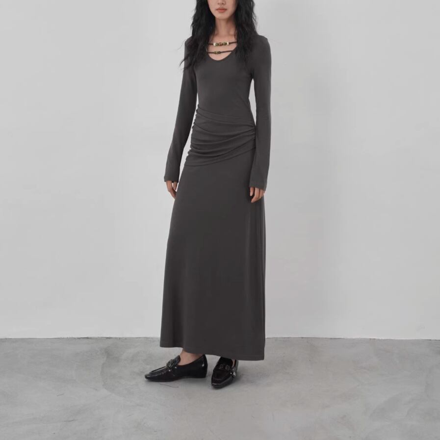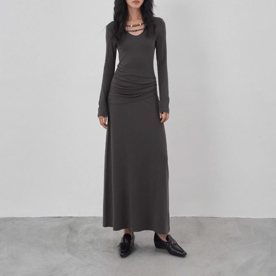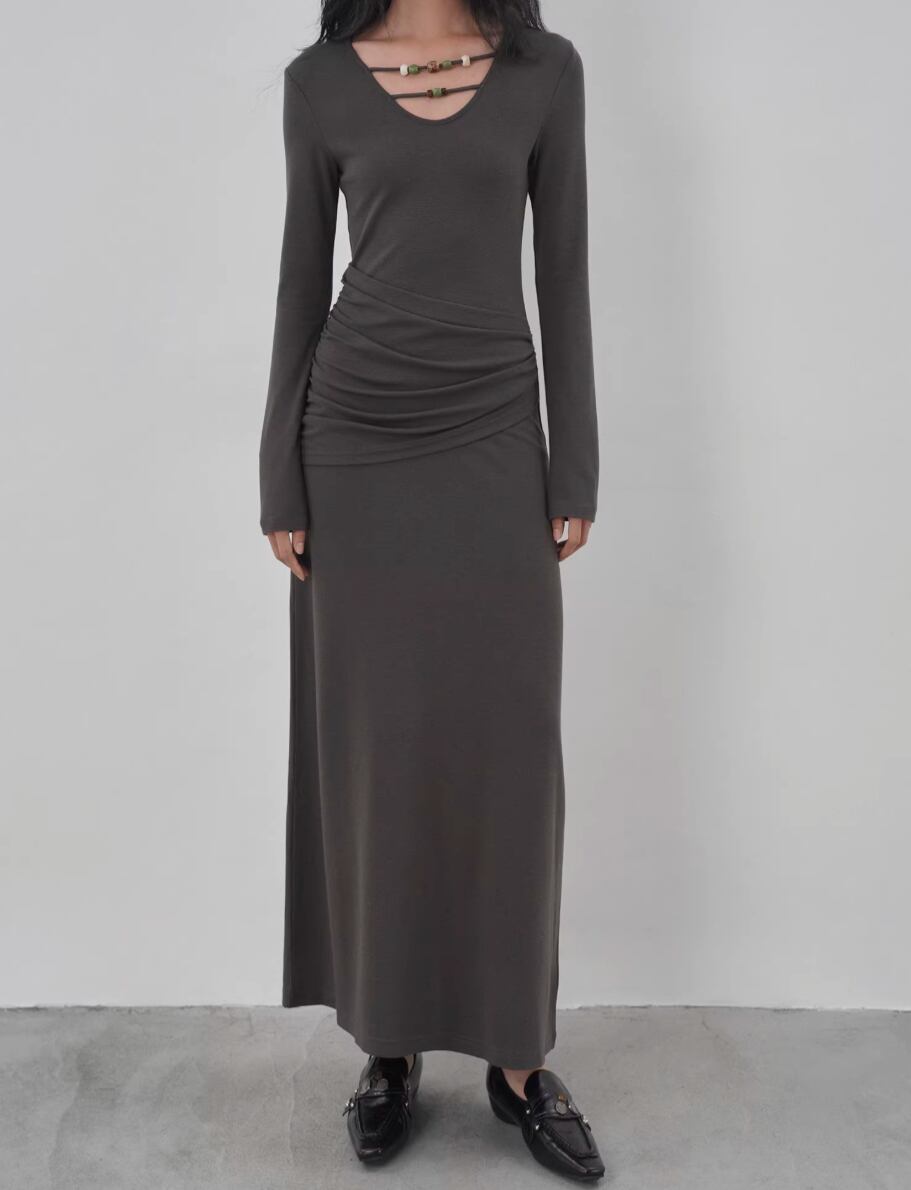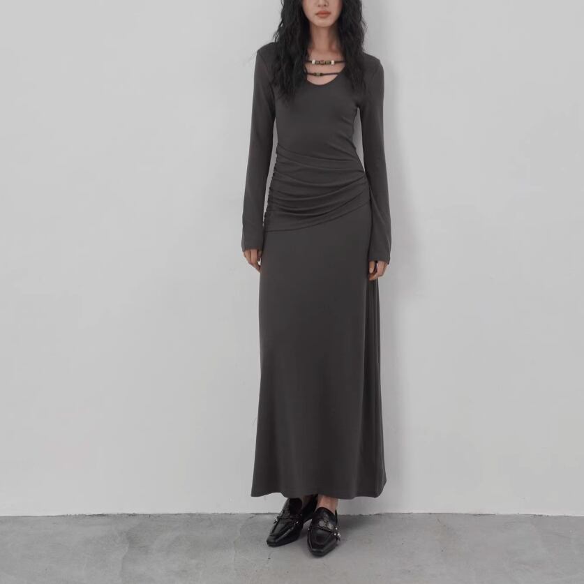 【2点セット】ドレープデザイントップス+ワンピース ・21648