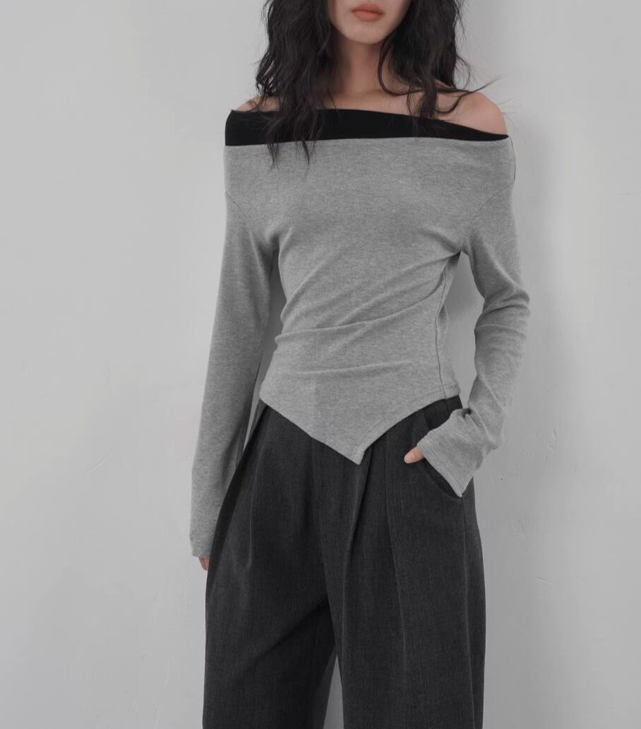 【2点セット】ドレープデザイントップス+ワンピース ・21648