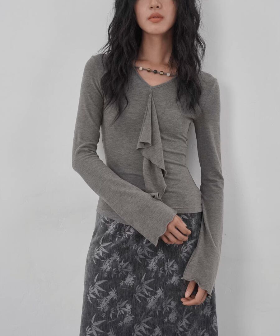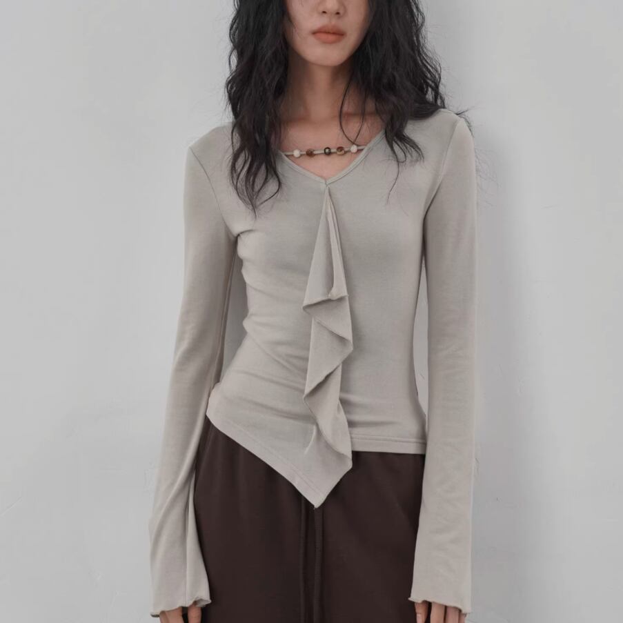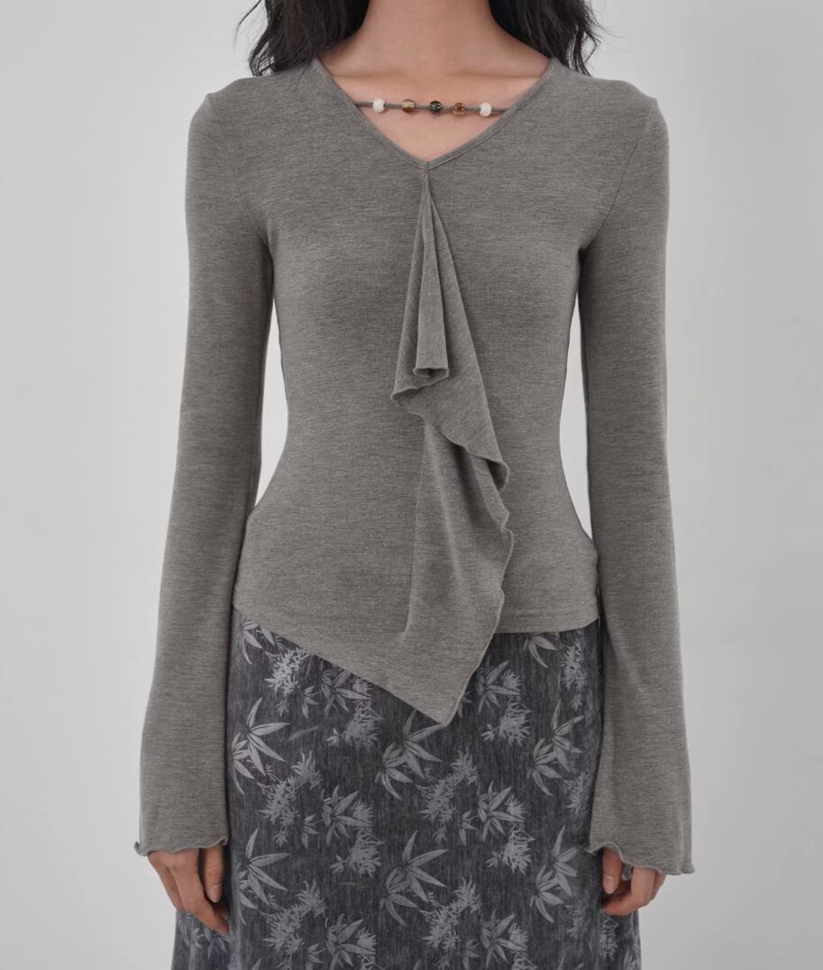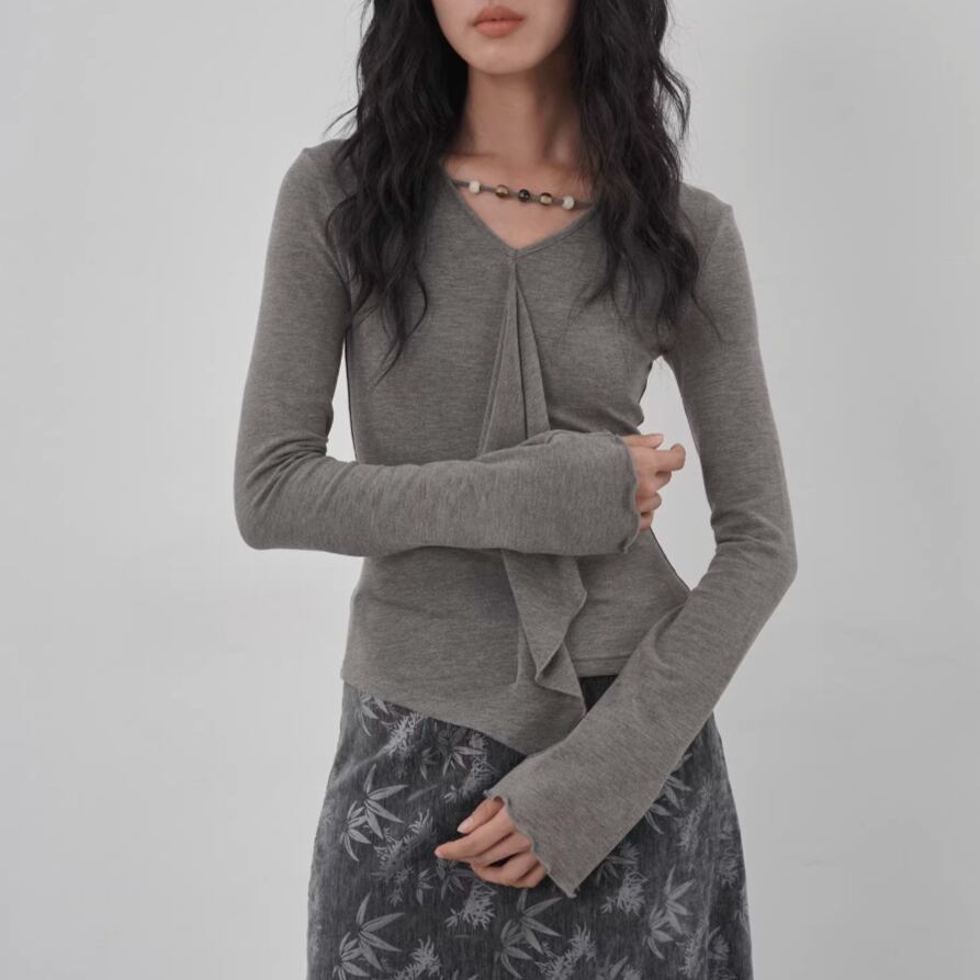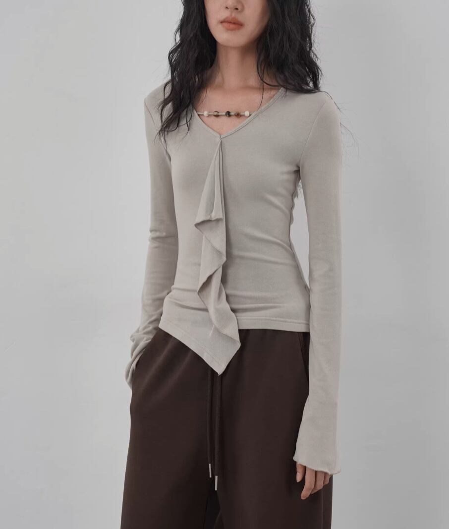 モックネックドレープトップス ・19792