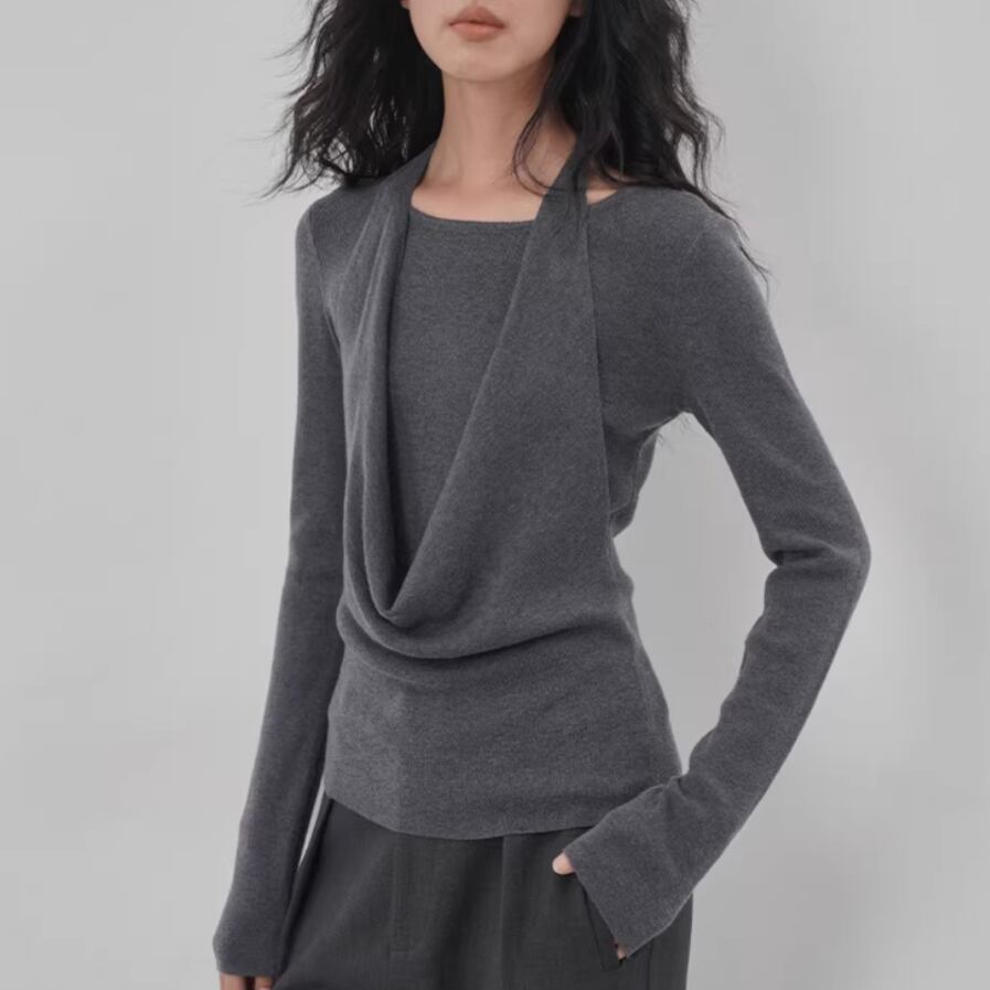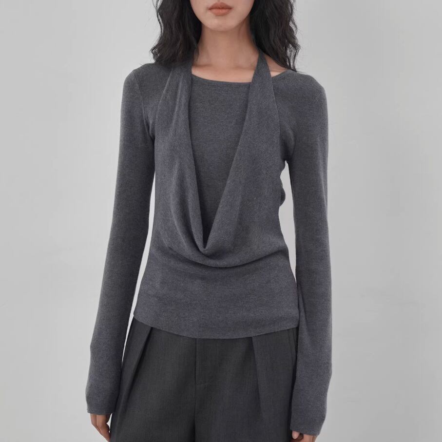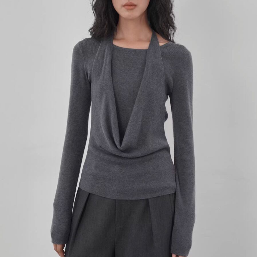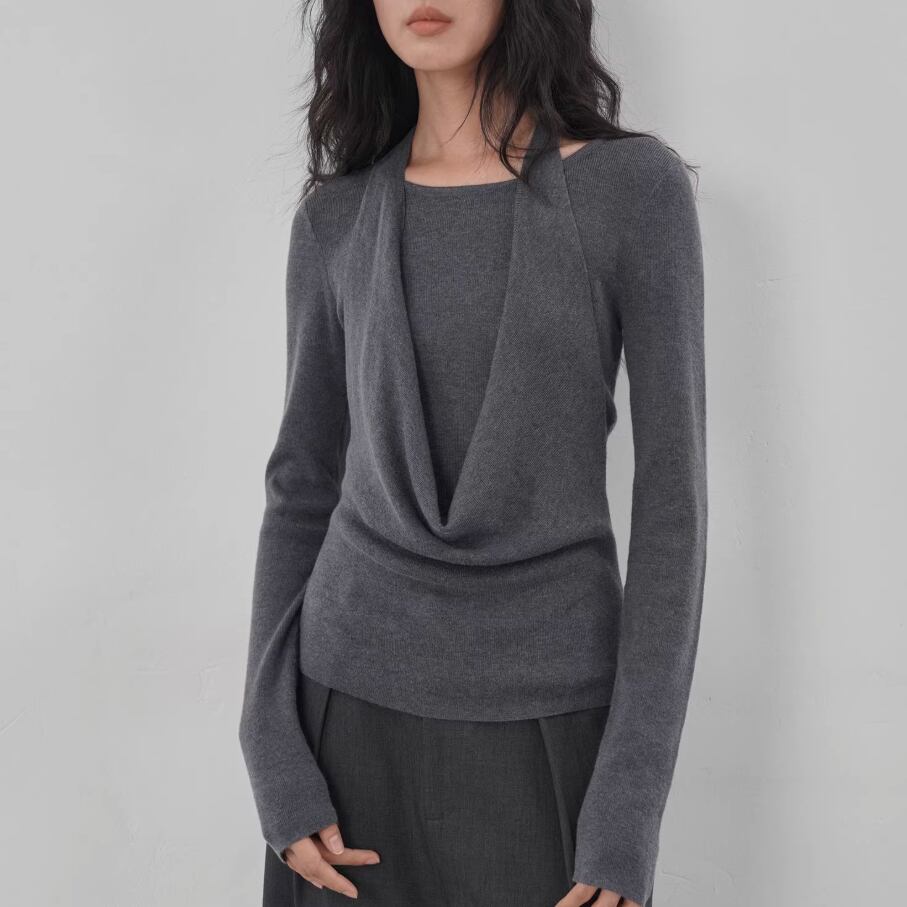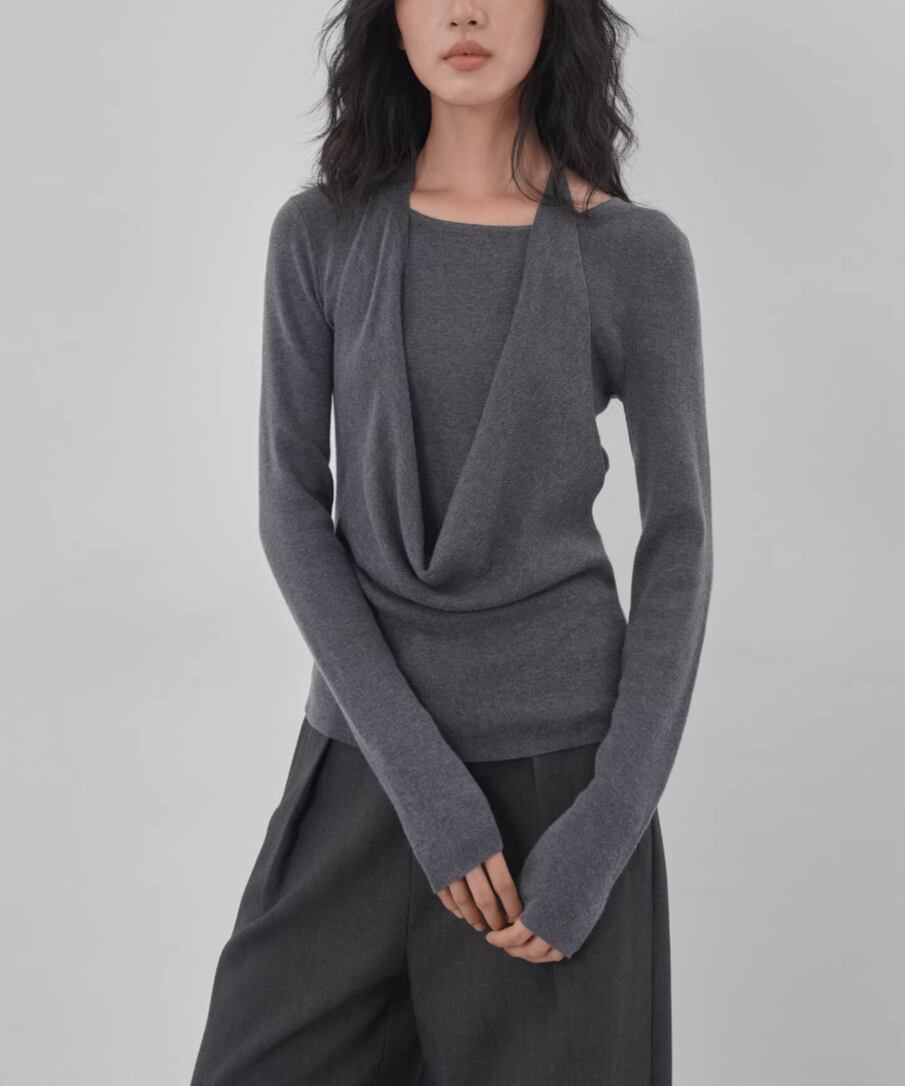 【2点セット】ドレープデザイントップス+ワンピース ・21648