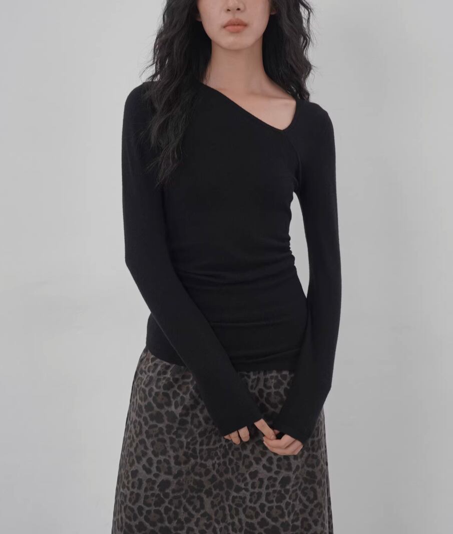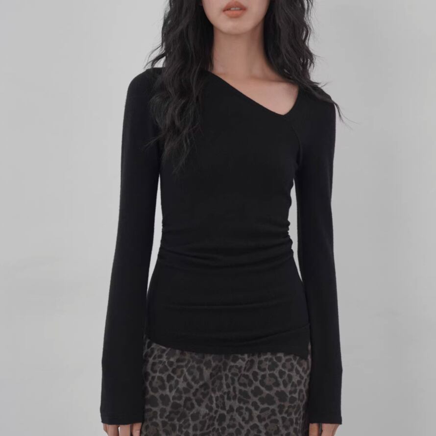 モックネックドレープトップス ・19792