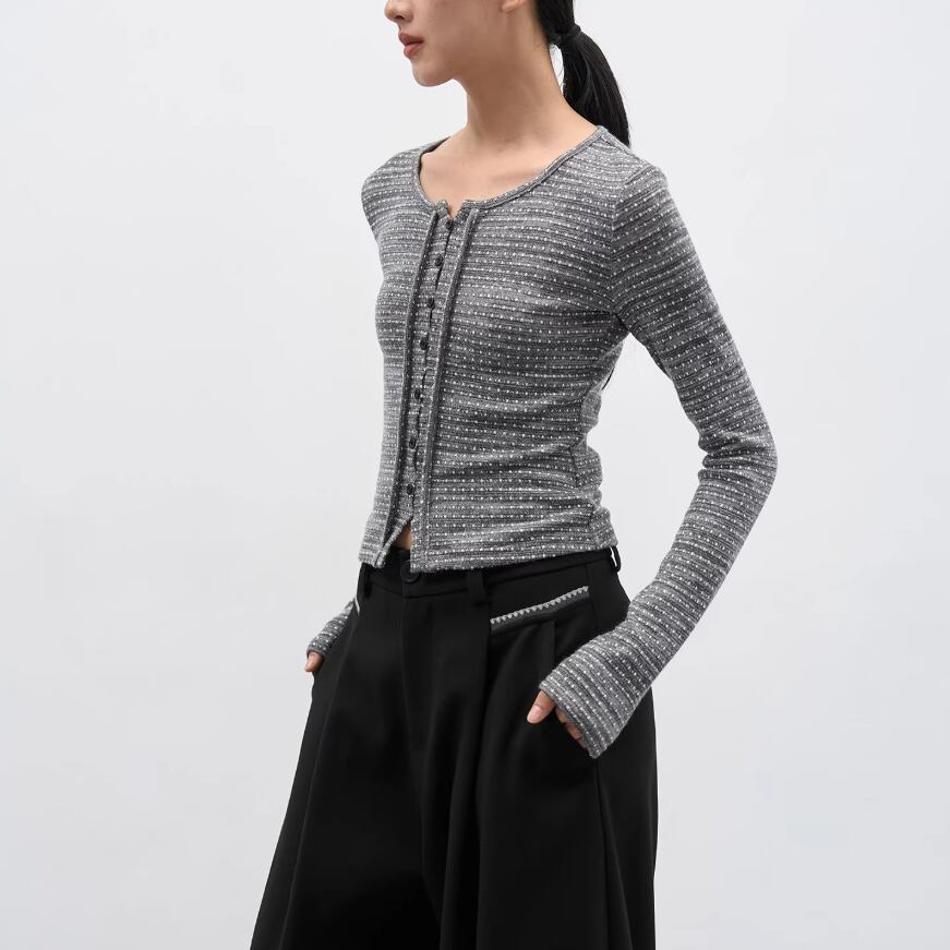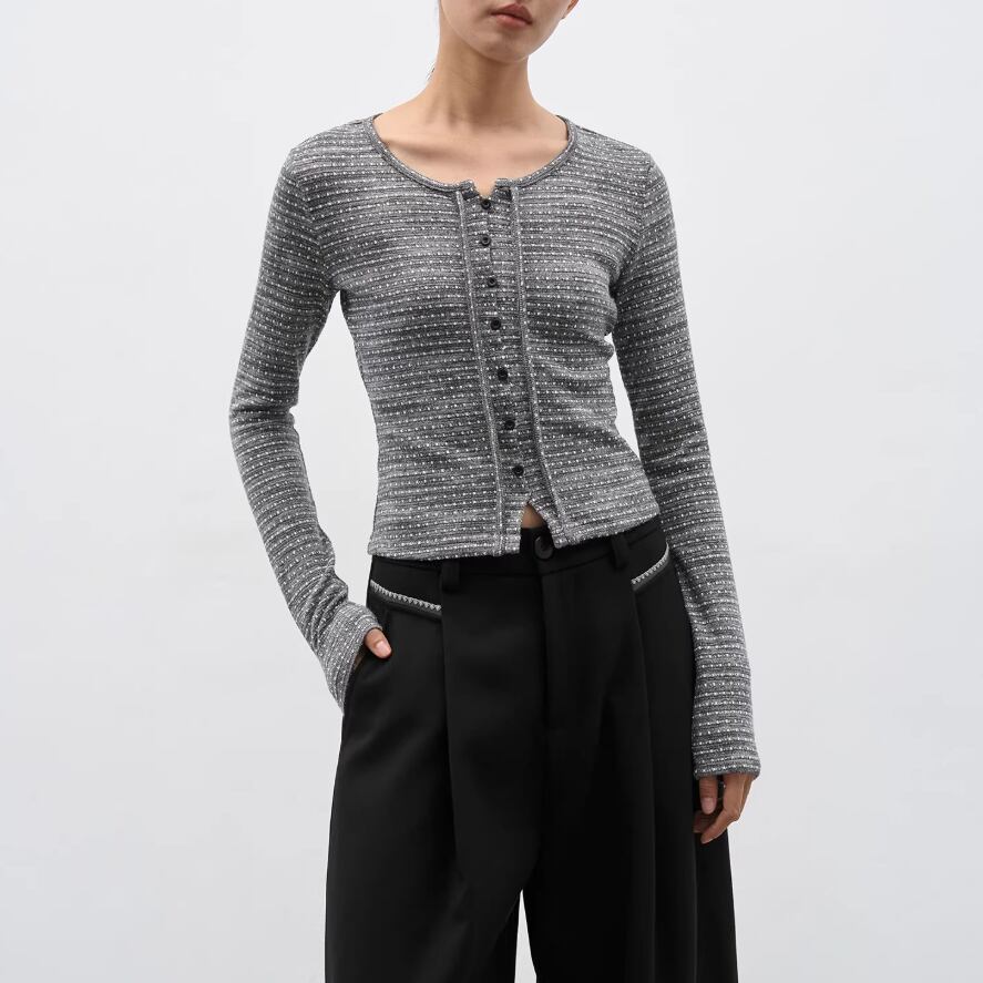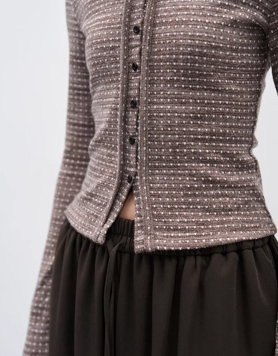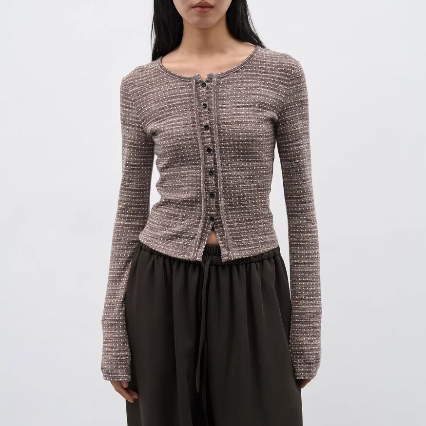▽Instagram「新作情報配信中」 フォローお願いいたします。 https://www.instagram.com/stir.clothes/ ▼カラー グレー(画像2枚目) ブラウン(画像3枚目) ▼サイズ [ Sサイズ ] 着丈45cm バスト76cm 肩幅35cm 袖丈62cm [ Mサイズ ] 着丈46cm バスト80cm 肩幅36cm 袖丈63cm [ Lサイズ ] 着丈47.5cm バスト85cm 肩幅37.5cm 袖丈64cm [ XLサイズ ] 着丈49cm バスト90cm肩幅39cm 袖丈65cm ※1-3cm程度の誤差がある場合がございます。予めご了承ください。 ▼素材 ポリエステル、ビスコース、スパンデックス ▼シーズン 春,秋 ▼同じカテゴリの商品はこちら https://www.stir.jp/categories/3047426 ▽お支払い方法 ・クレジットカード決済 ・キャリア決済 (docomo/au/Softbank/Y!mobile) ・後払い決済 (商品お届け後コンビニ払いなど) ▽注意点 ※こちらの商品は決済から10日-3週間前後でのお届けとなります。 ※配送日時指定等に関しては、ご指定できないことご了承くださいませ。 ※できる限り早くお届けできるように手配させて頂きます。 ※検品はしておりますが、もし届いた商品に不備がありましたら、誠実に対応させていただきます。 商品ID:ST021704