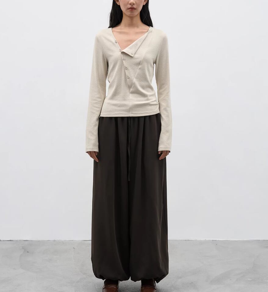 【2点セット】ドレープデザイントップス+ロングスカート ・21738